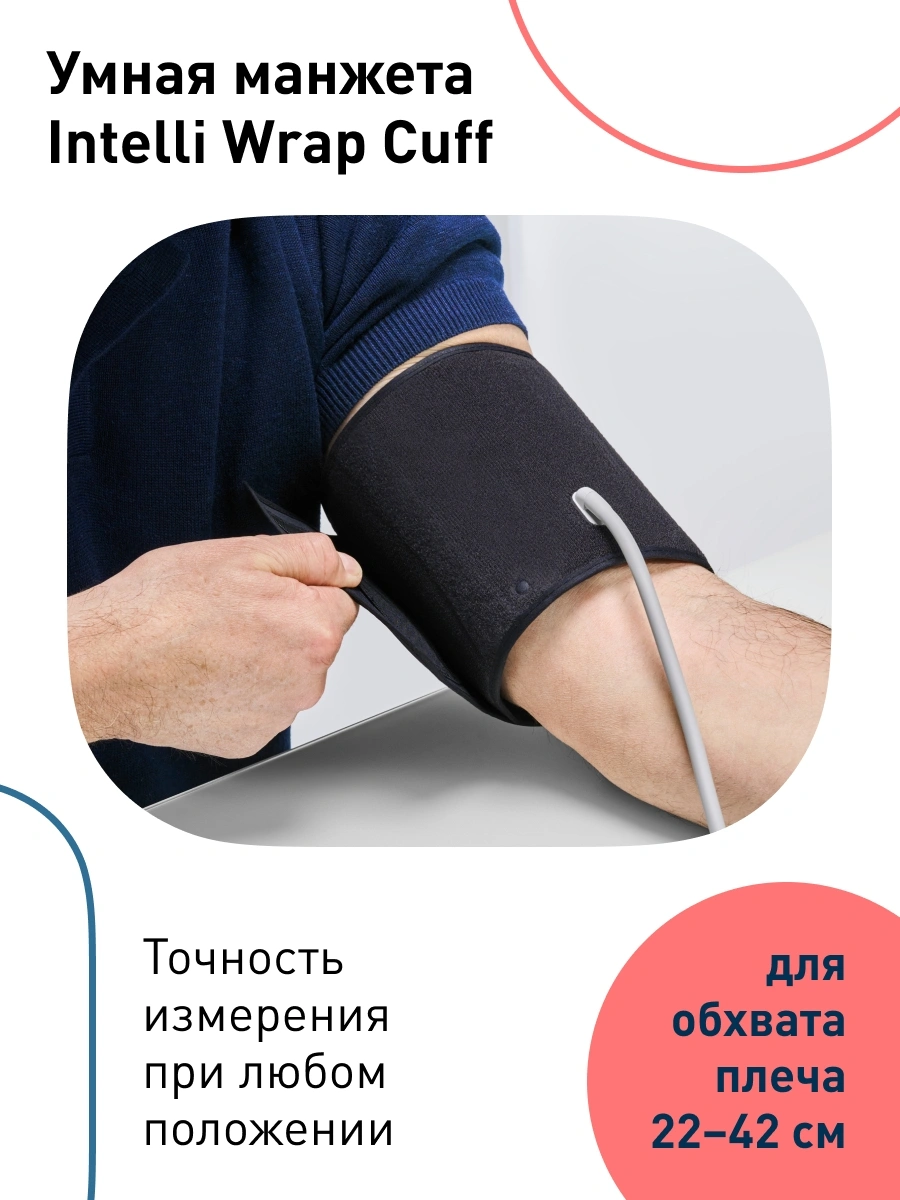 Технология интеллектуального измерения Intellisense, OMRON connect, Клинически апробирован, Умная манжета Intelli Wrap (22 - 42 см), Индикатор аритмии, Индикатор движения, Расчет среднего значения, Индикатор правильной фиксации манжеты, Светодиодный индикатор уровня артериального давления