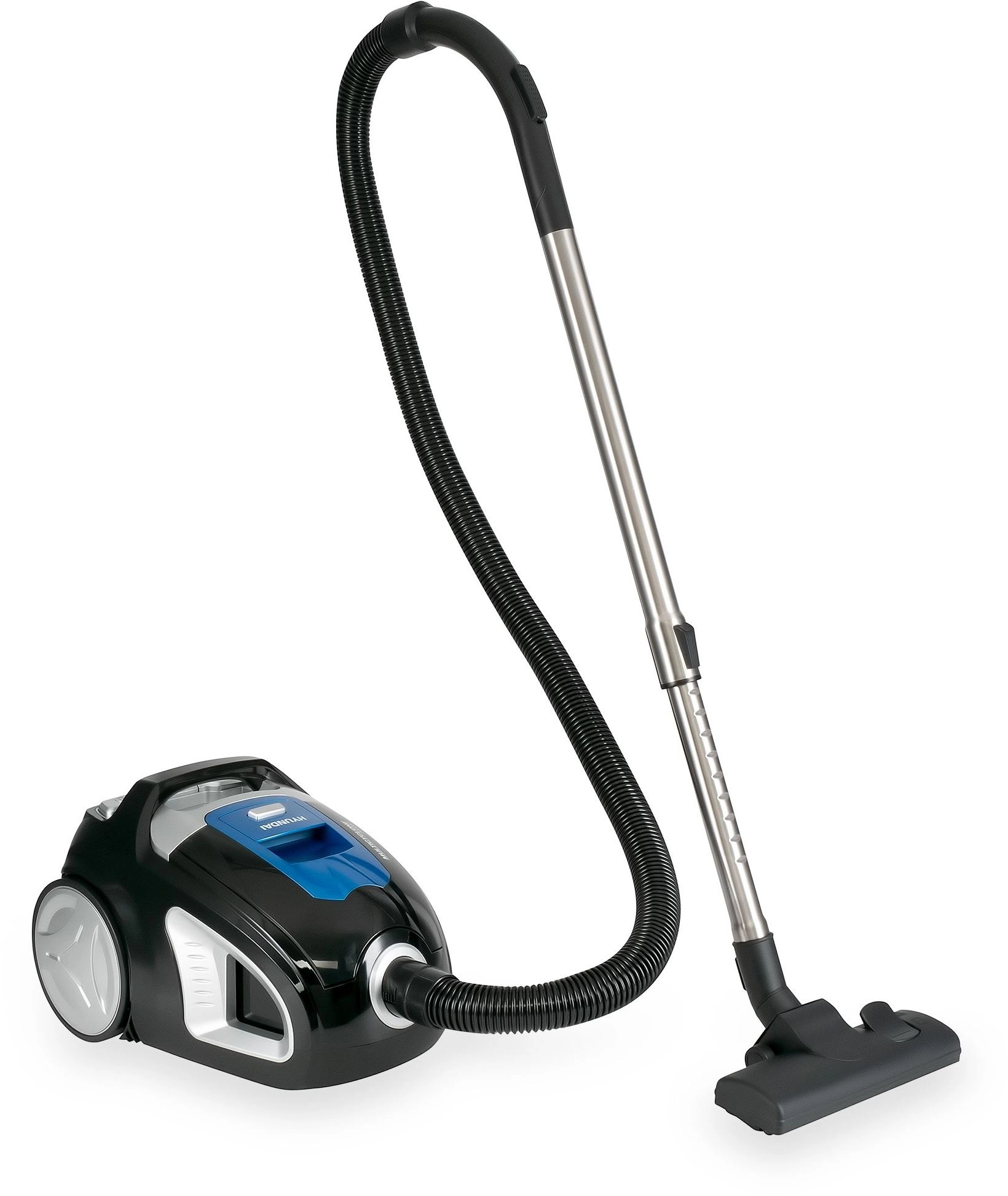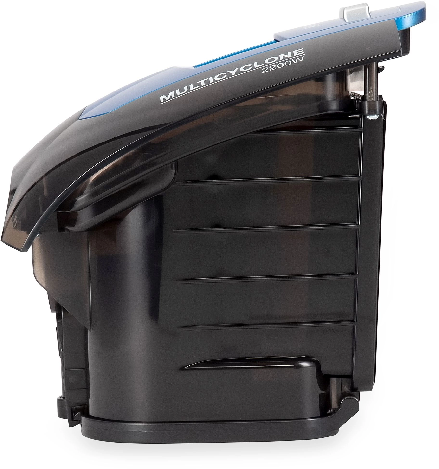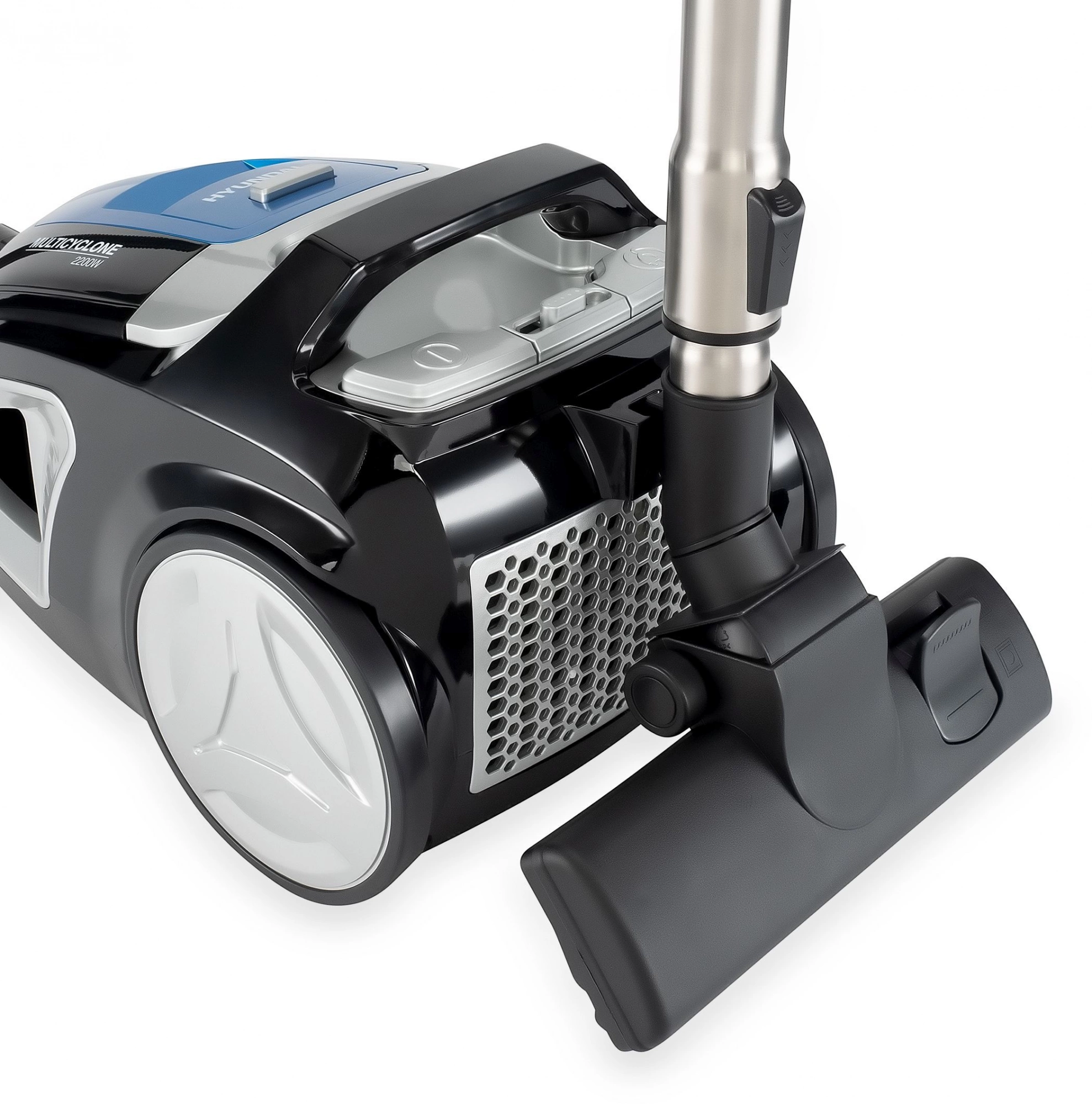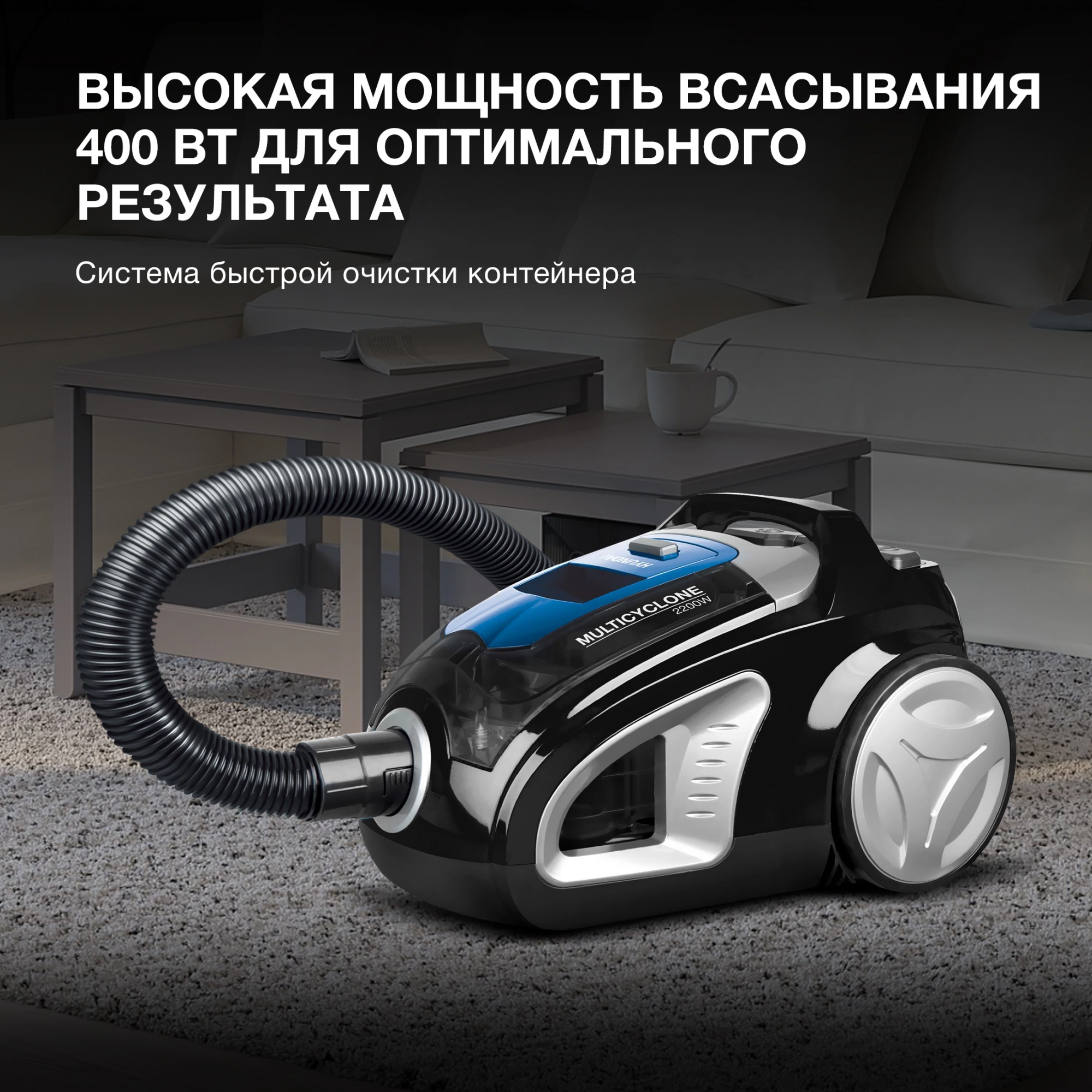 Благодаря мотору мощностью 2200 Вт и технологии мультициклона устройство быстро и эффективно убирает самый разный мусор. В том числе он тонко фильтрует и мелкие частицы пыли. Мощность непосредственно всасывания данной модели составляет 400 Вт и изменяется с помощью переключателя на её корпусе. В любом выбранном режиме уровень шума при использовании девайса не превышает 79 дБ.