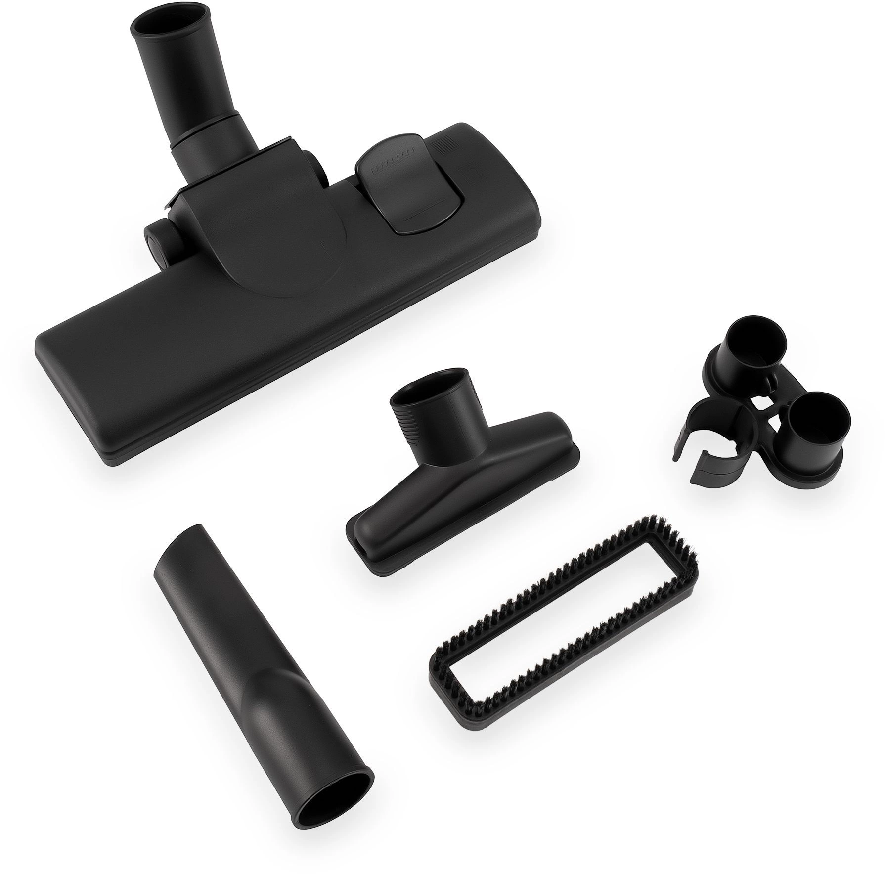 В комплекте с прибором поставляется удобная телескопическая трубка, длину которой можно подстроить на своё усмотрение. Также набор включает сразу 3 насадки, обеспечивающие широкий функционал и высокую эффективность уборки в любых условиях. Помимо этого, он также включает и подробное руководство по эксплуатации, исчерпывающе отвечающее на любые вопросы по использованию данной модели.