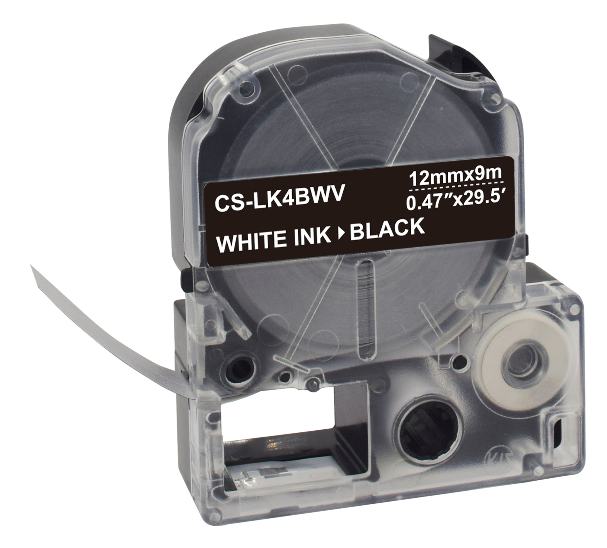 Картридж ленточный Cactus CS-LK4BWV. Цвет шрифта белый, цвет ленты черный; ширина 12 мм, длина 9 м. Прочные этикетки устойчивы к воде, выдерживают высокие и низкие температуры.