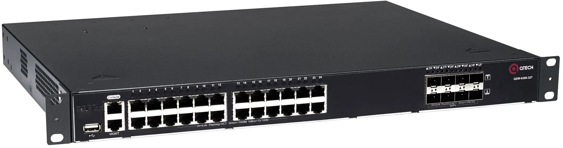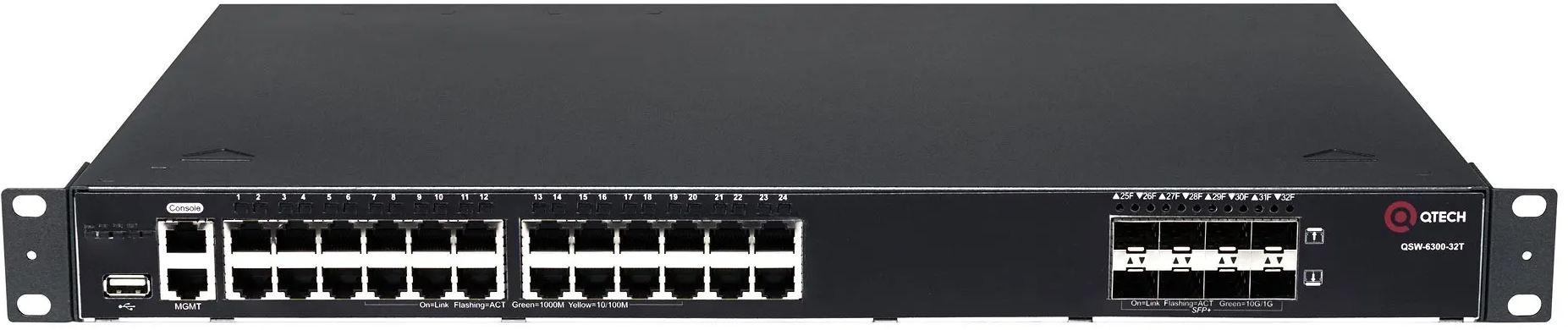 Управляемый стекируемый коммутатор уровня L3, 24 порта 10/100/1000BASE-T, 8 портов 10GbE SFP+, 4K VLAN, 64K MAC адресов, 1 порт USB 2.0, консольный порт, порт управления MGMT, 2 сменных БП (поставляются отдельно) разъем питания на задней панели, размеры ШхГхВ (442x340x44 мм)
