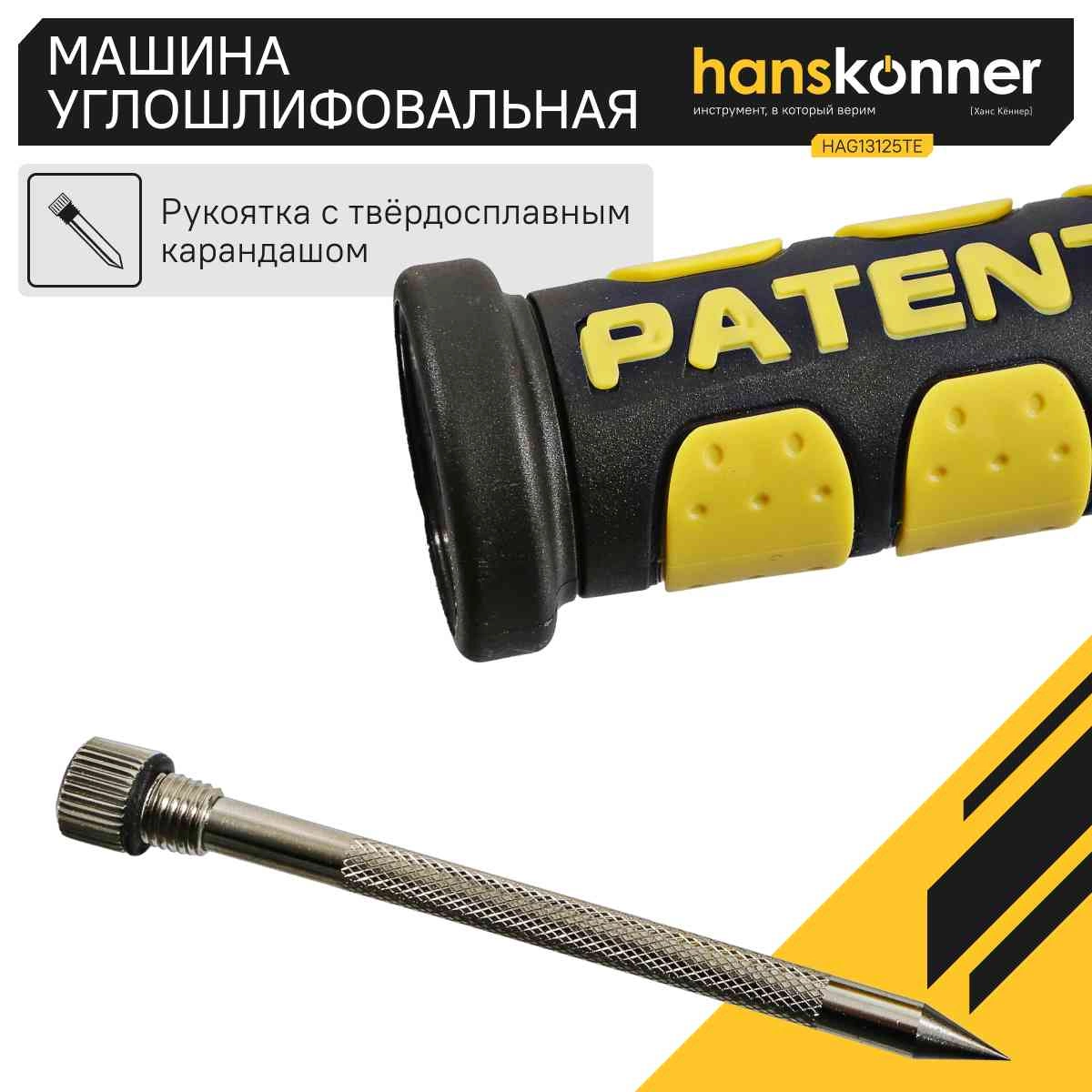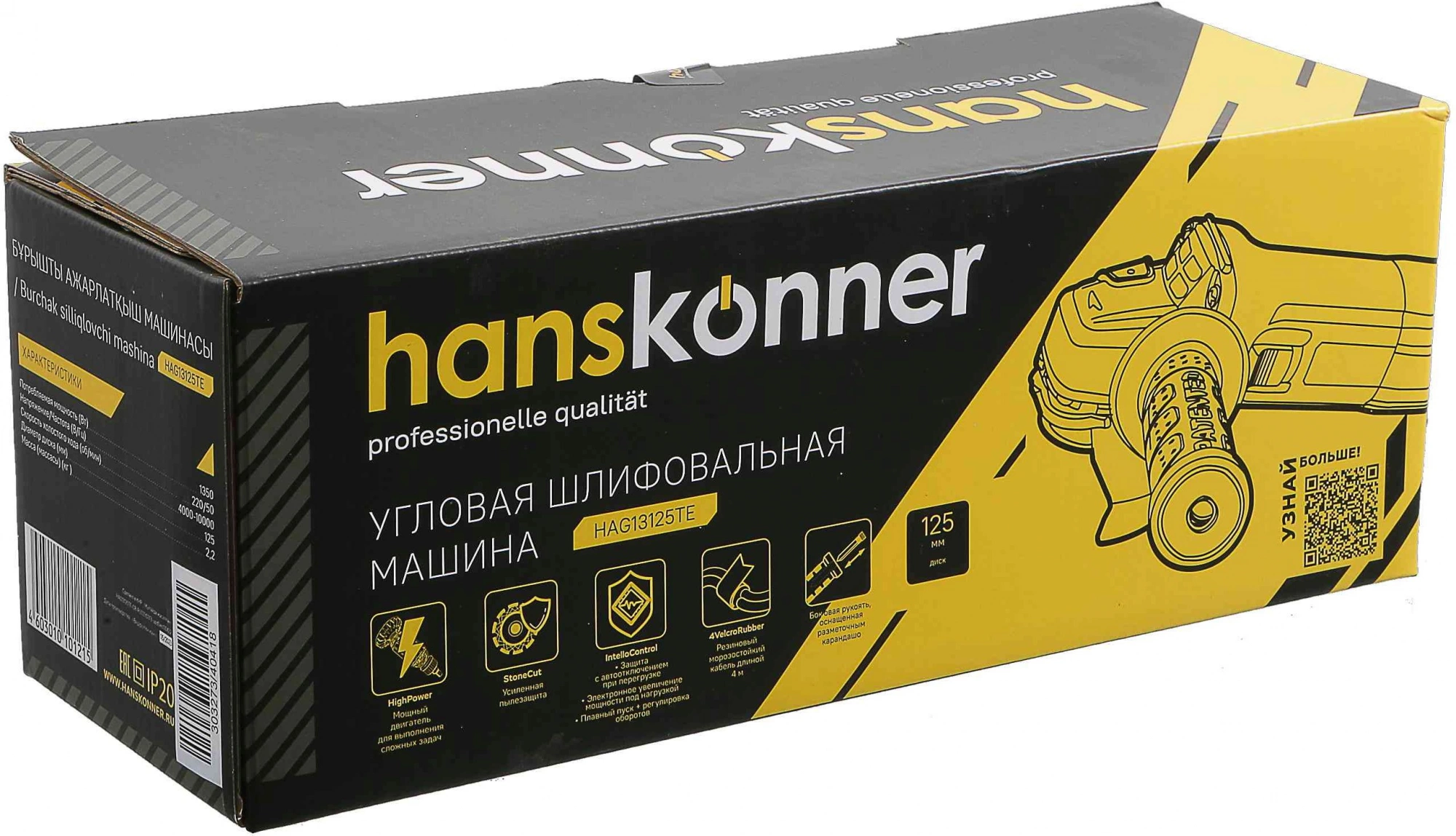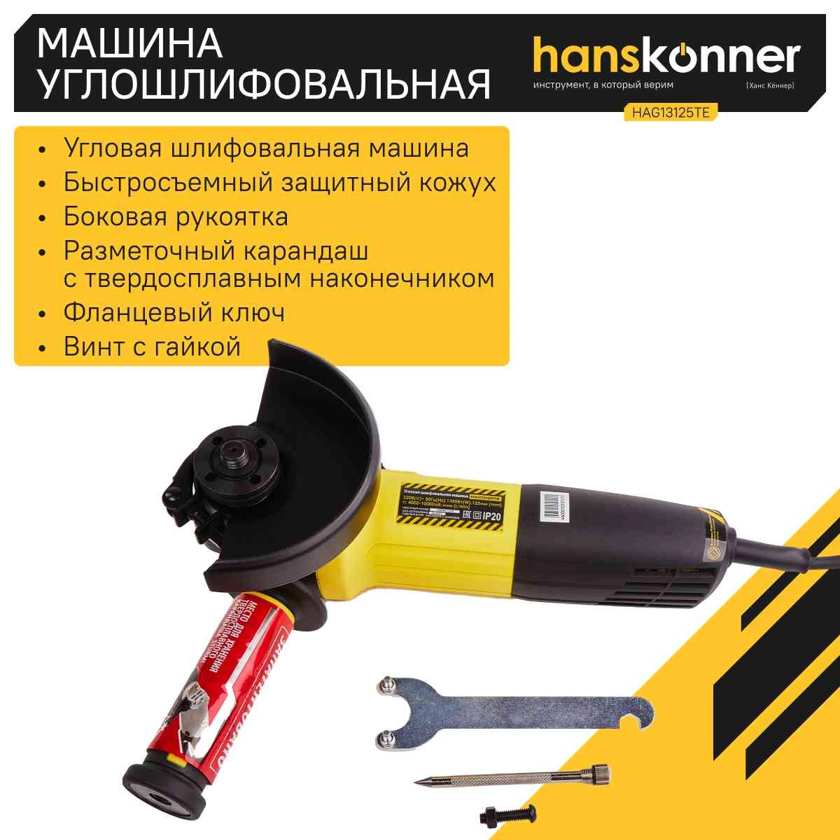 Углошлифовальная машина, быстросъемный защитный кожух, боковая рукоятка, разметочный карандаш с твердосплавным наконечником, винт с гайкой, фланцевый ключ, инструкция по эксплуатации, щетки с самоотключением, инструкция, коробка.