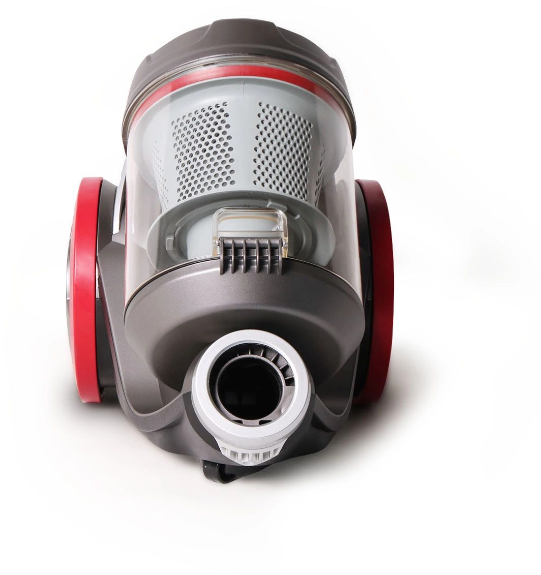 легко очищаемый пылесборник, место для хранения насадок, прорезиненные колеса, шланг