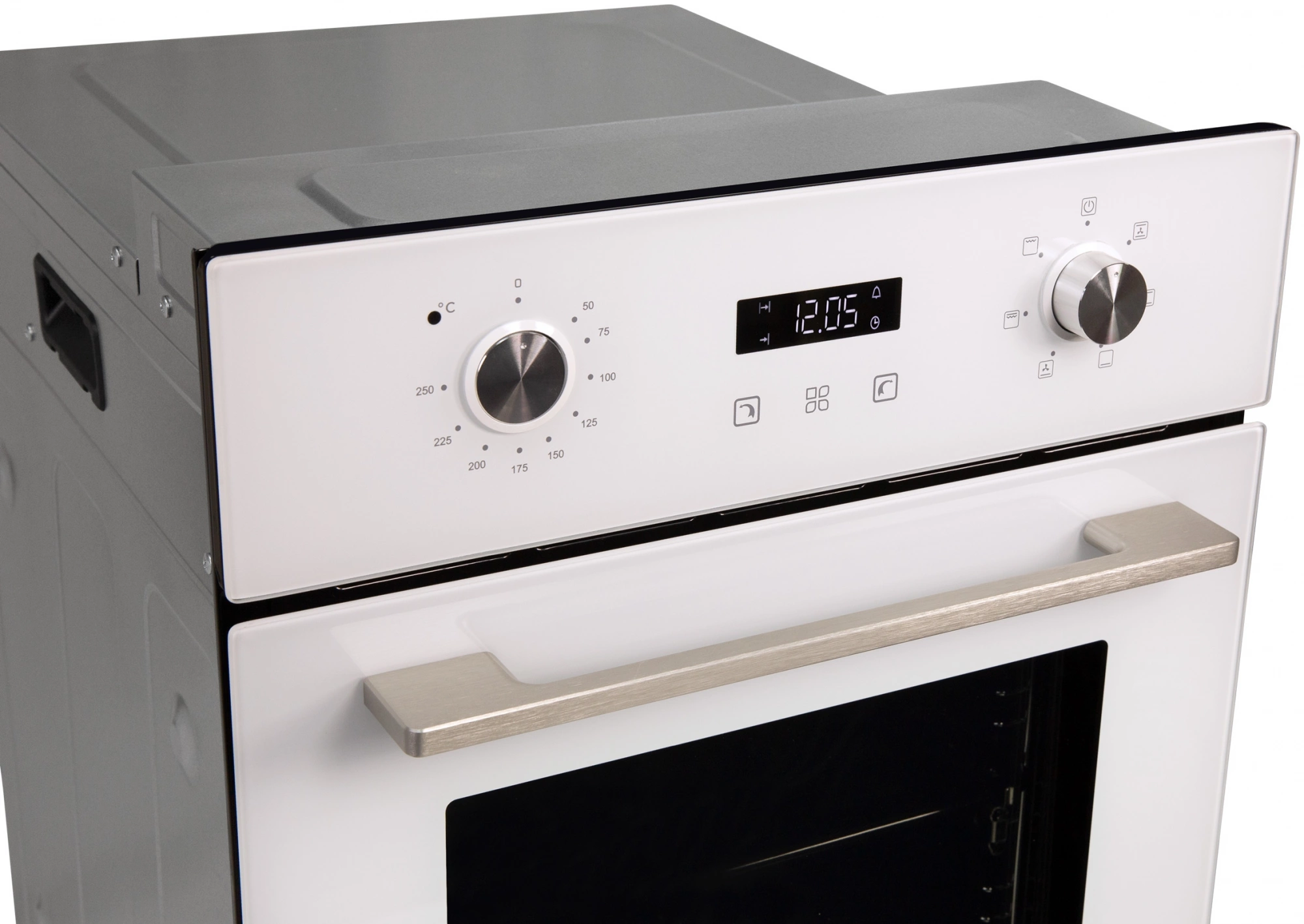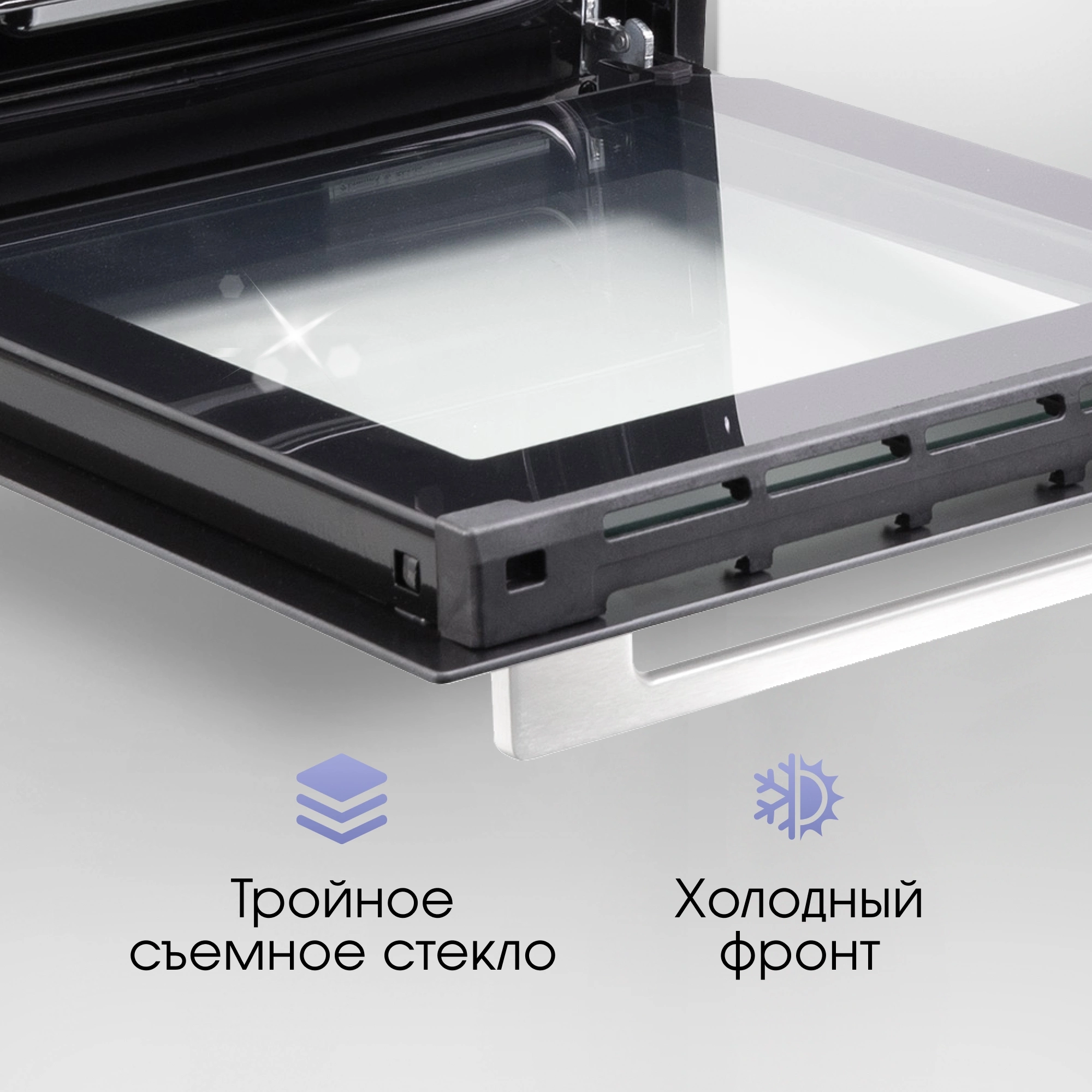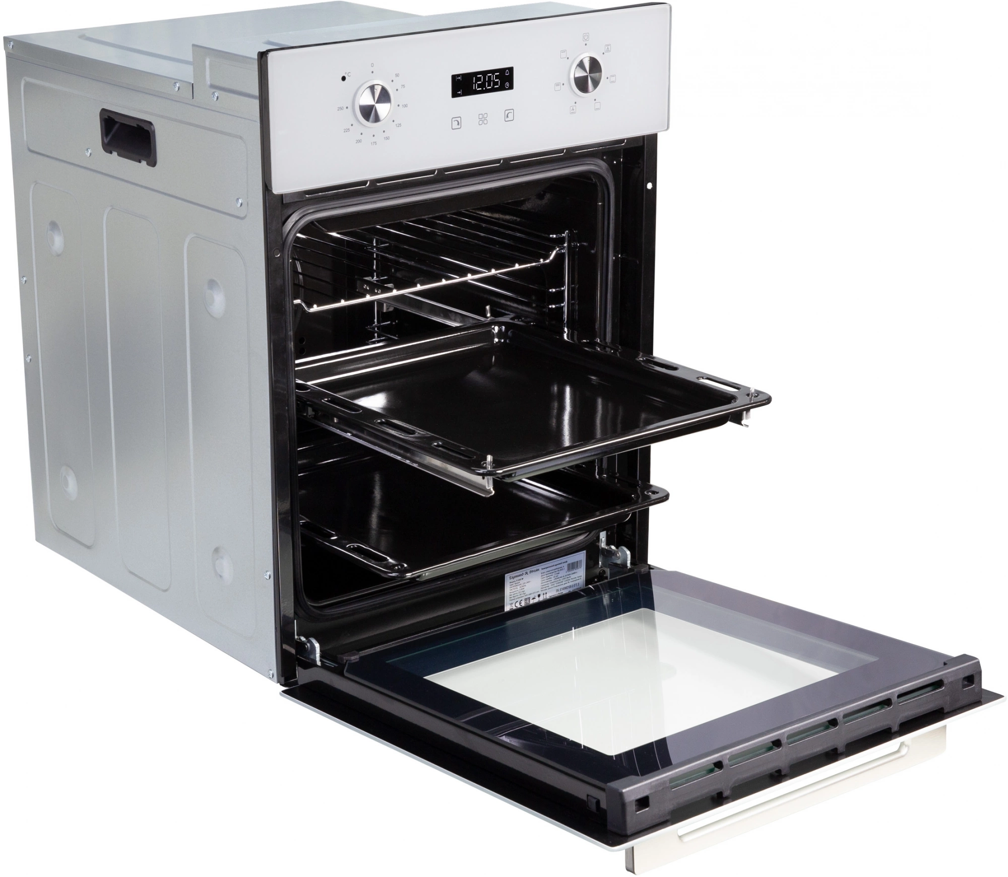 дисплей, полностью стеклянная внутренняя поверхность дверцы духовки, телескопические направляющие, утапливаемые переключатели, электронный программатор