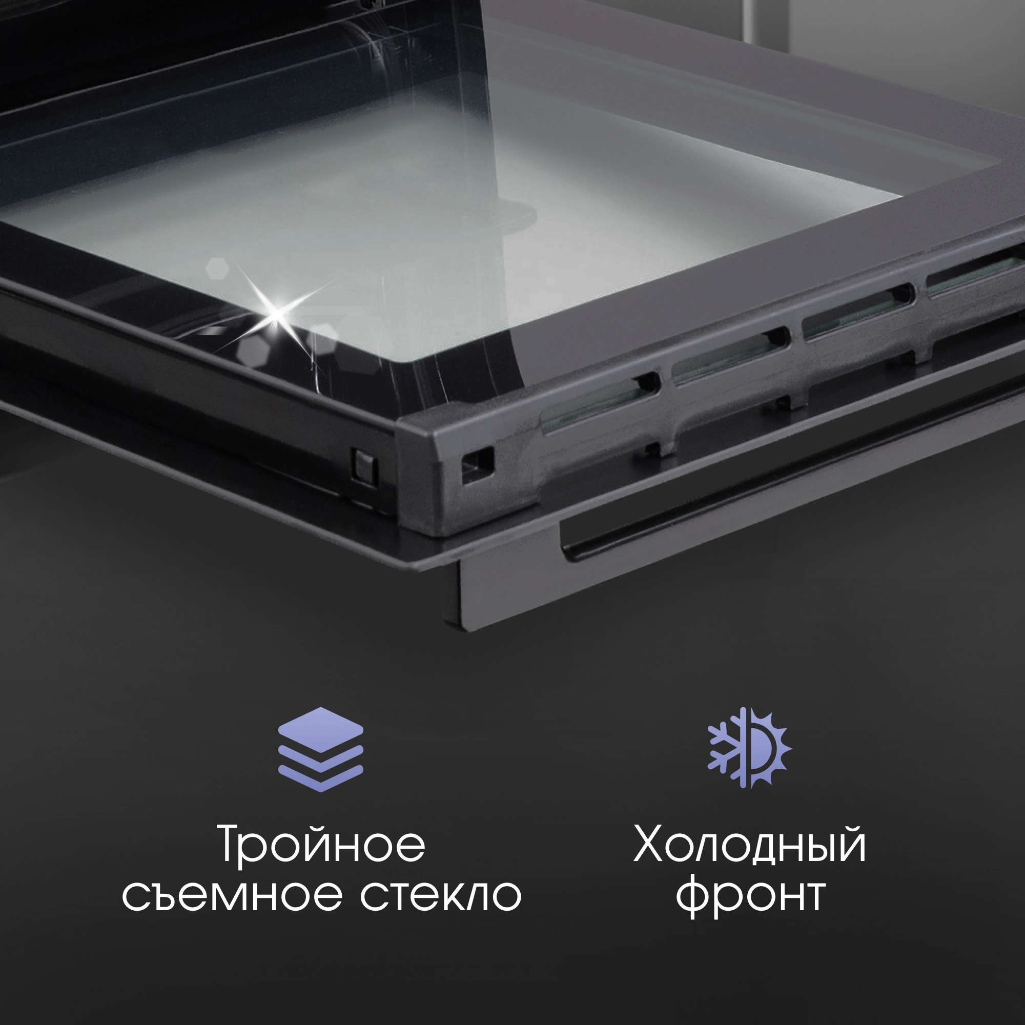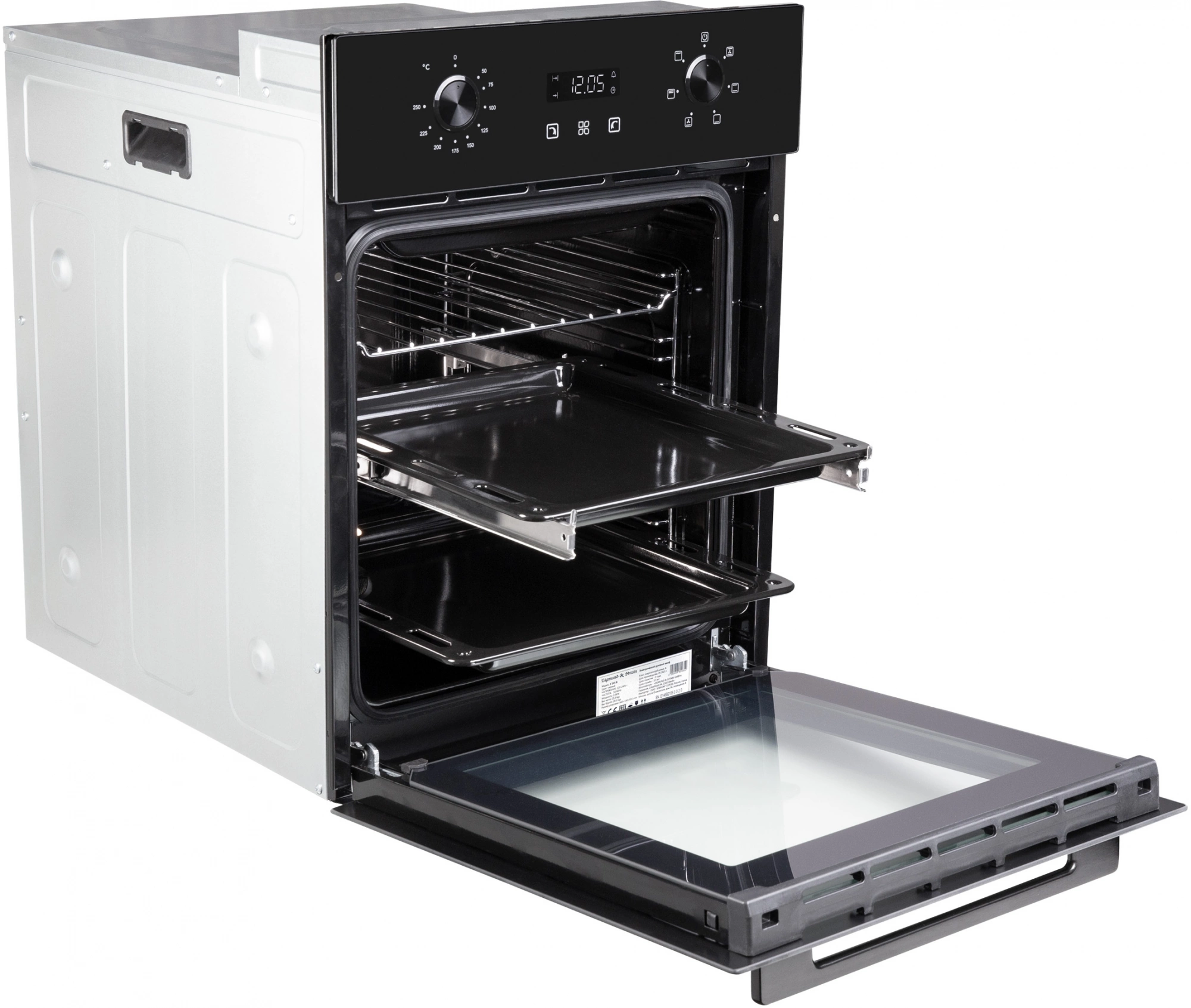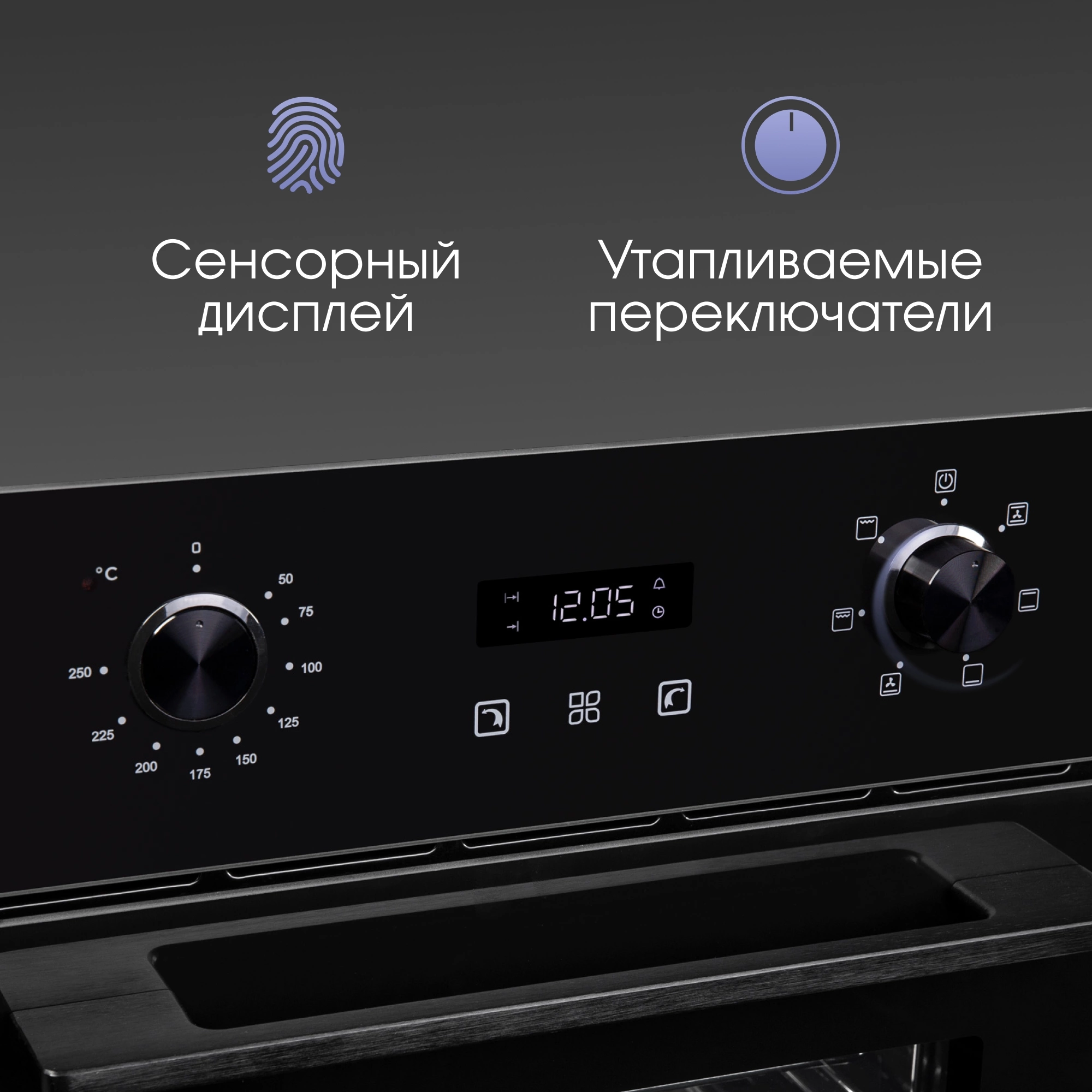 дисплей, полностью стеклянная внутренняя поверхность дверцы духовки, телескопические направляющие, утапливаемые переключатели, электронный программатор