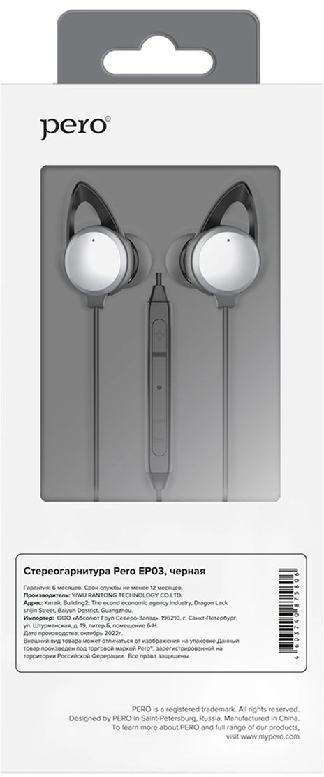 PERO EP03 имеет тканевую оплетку провода, которая препятствует запутыванию. Пульт EP03 оснащен встроенным микрофоном, а также кнопками ответа и регулировки громкости.