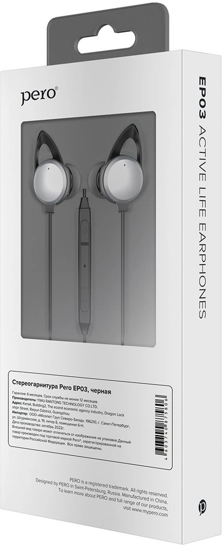 Стереогарнитура PERO EP03 оснащена встроенным фиксированным креплением из плотного силикона, которое гарантирует прочную фиксацию наушников.