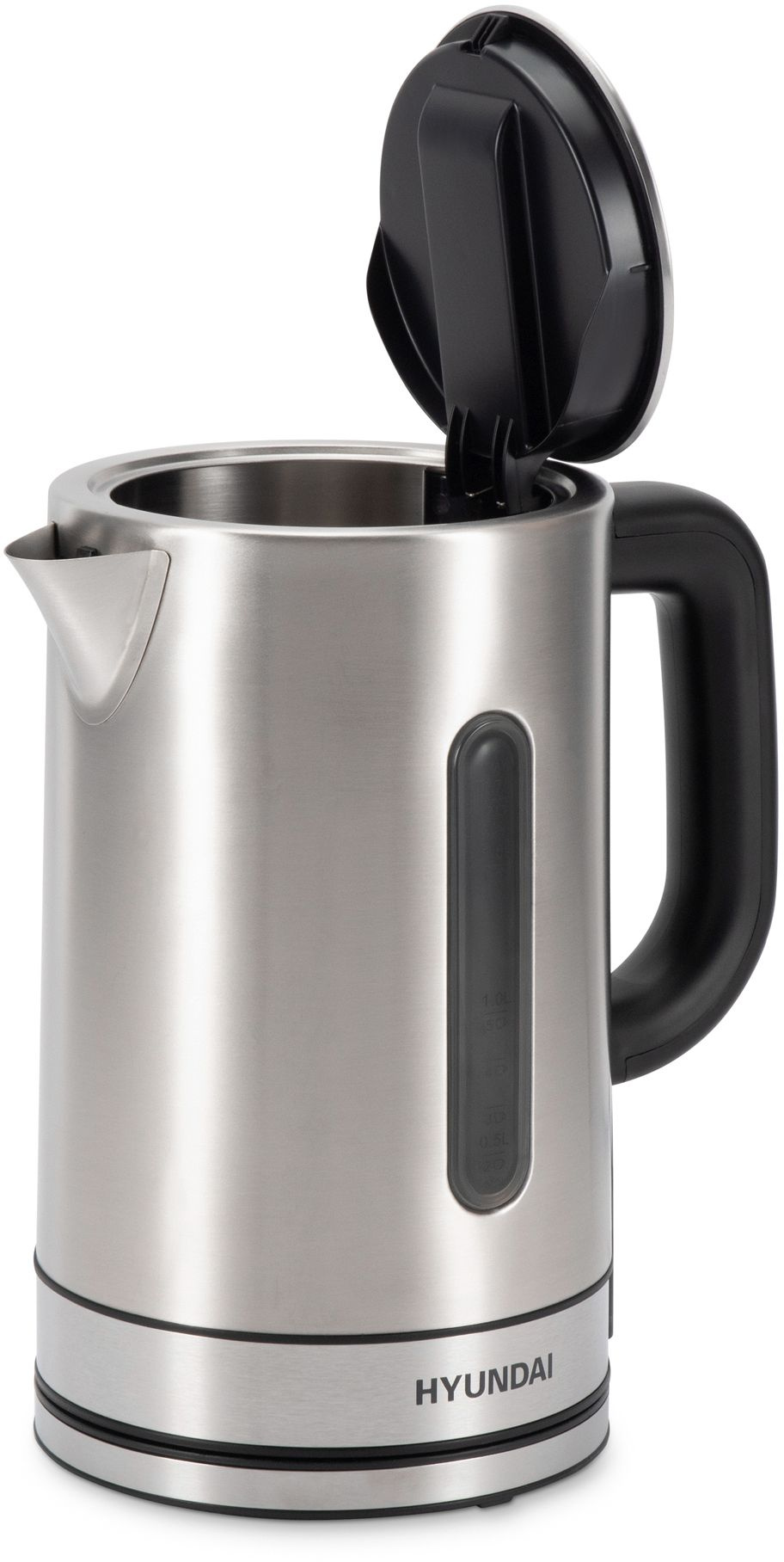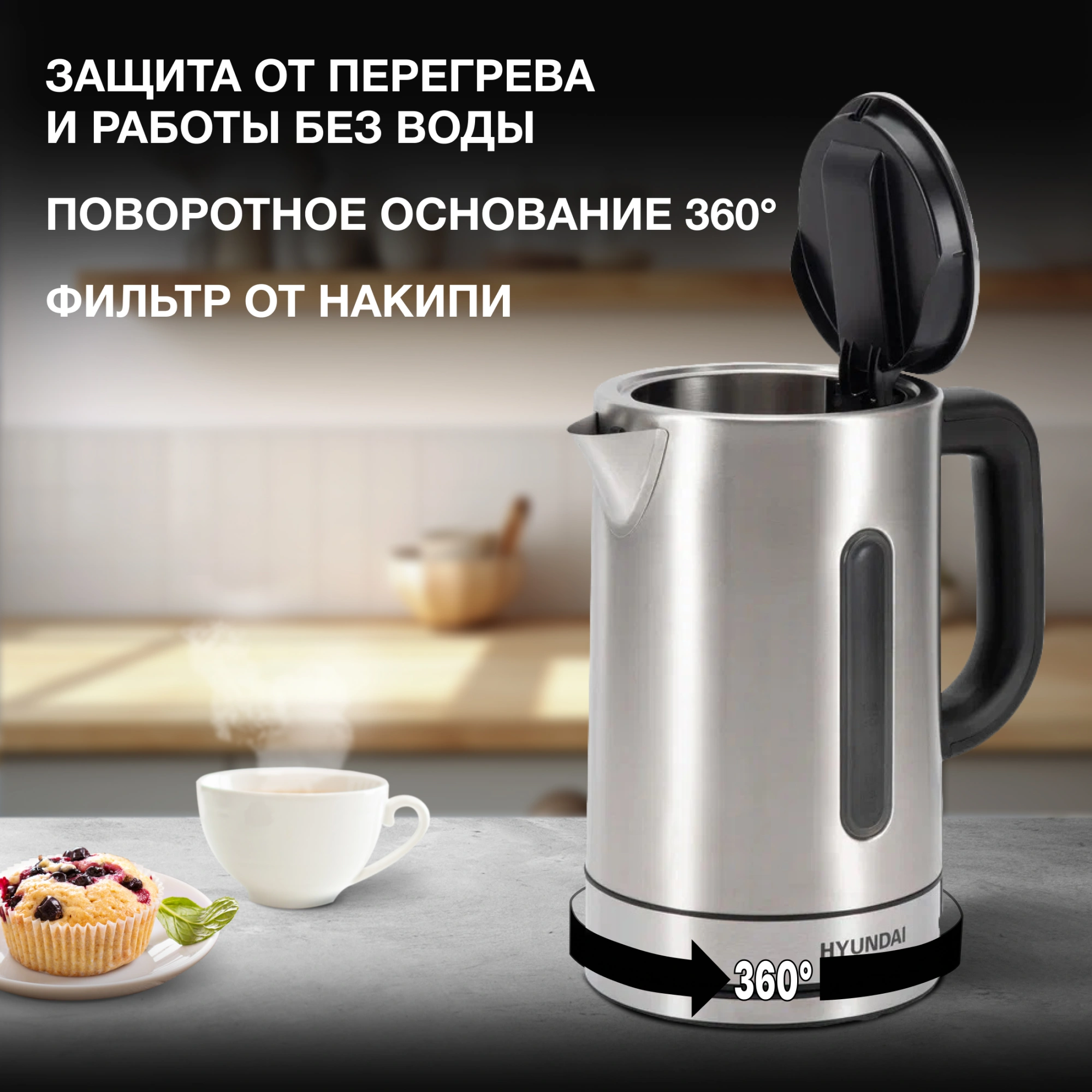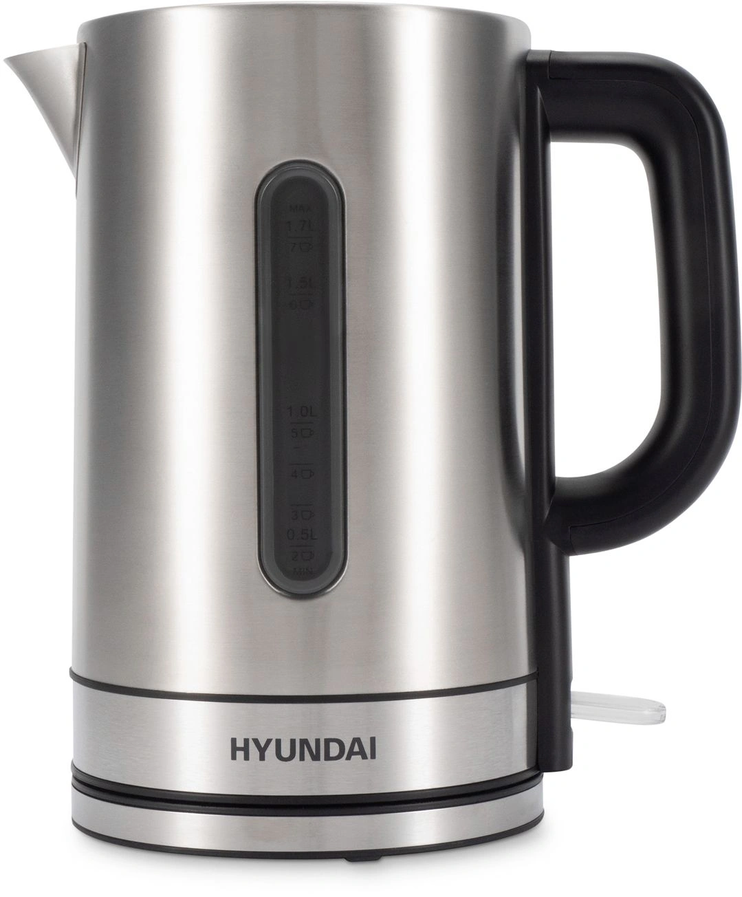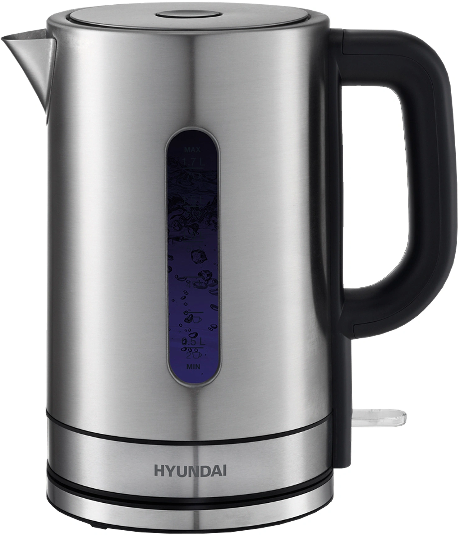 Hyundai HYK-S2506 – электрический чайник с корпусом из нержавеющей стали, обладающей высокой стойкостью к деформации. Благодаря скрытому в дне нагревательному элементу мощностью 2200 Вт он способен вскипятить до 1,7 воды за считанные минуты.