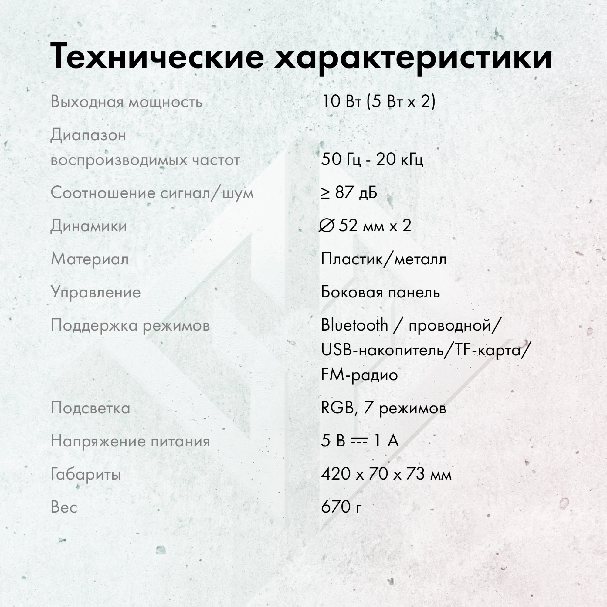 Адаптивная RGB-подсветка с несколькими режимами. Подключение/питание по USB-кабелю тип А + Bluetooth подключение. Зарядка через порт USB тип C.