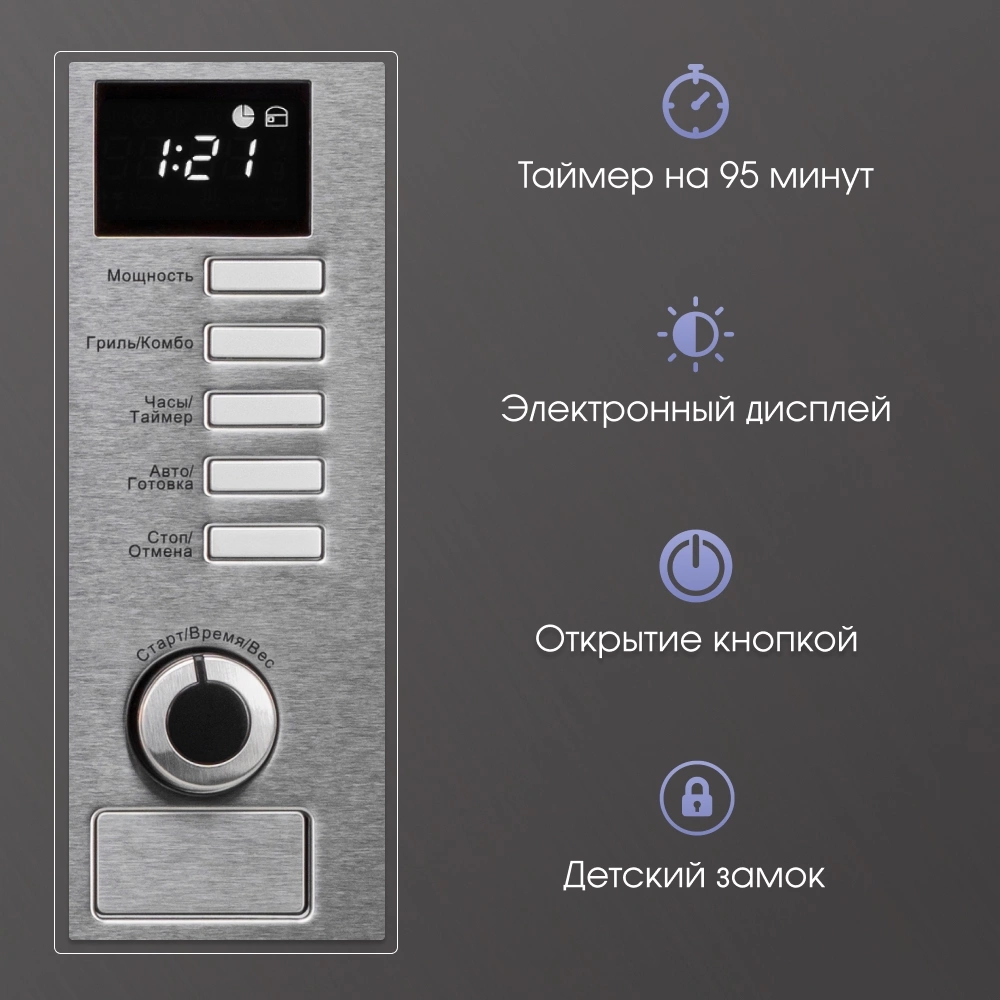 размораживание по весу, режим микроволны+гриль, экспресс-режим приготовления