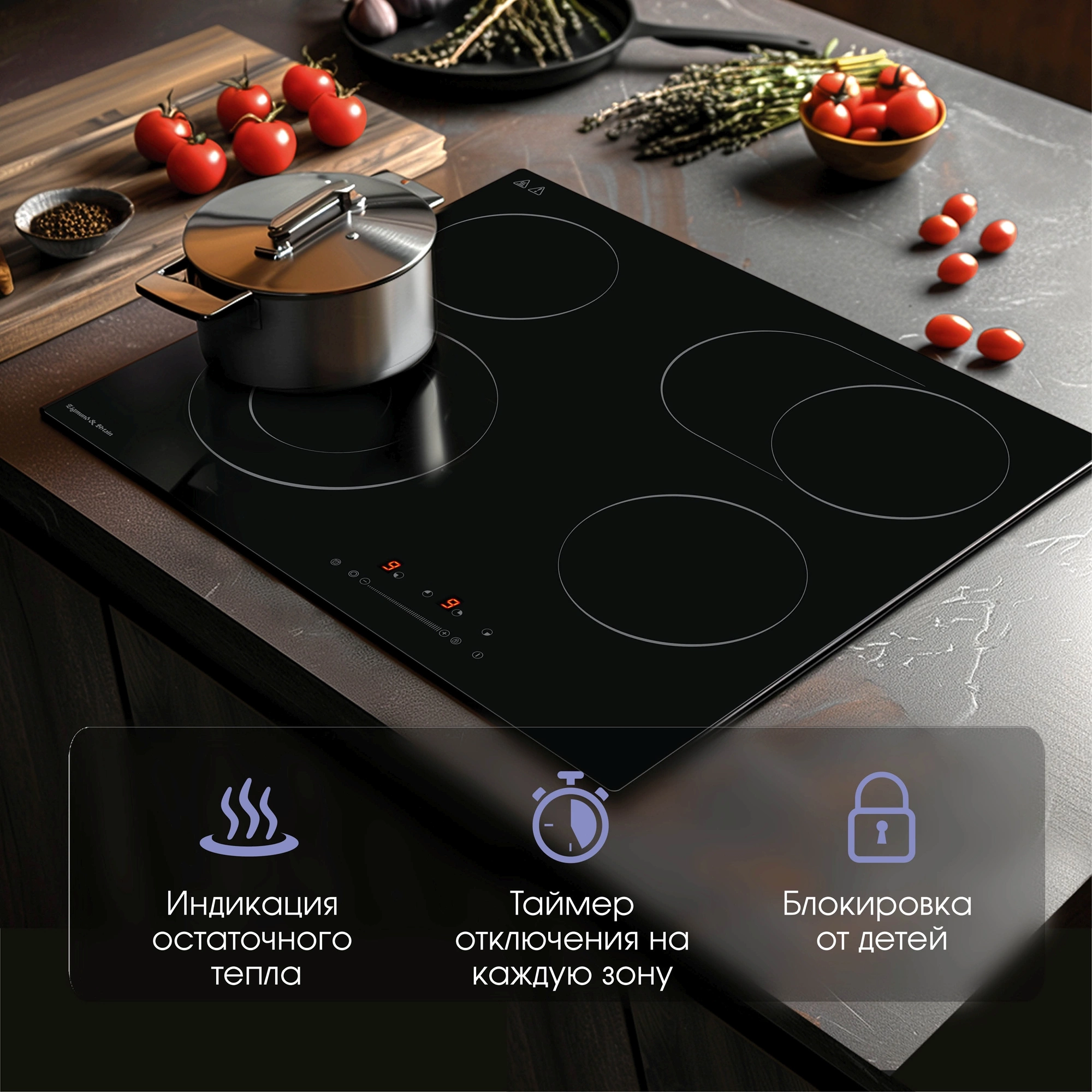 блокировка управления (защита от детей), защитное отключение, отключение при проливе жидкости