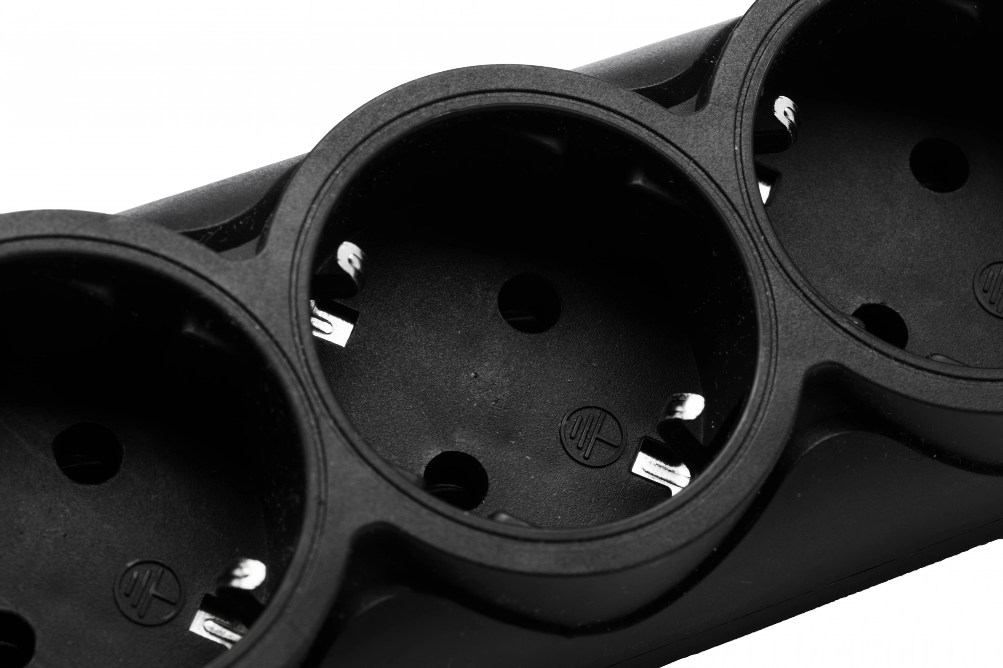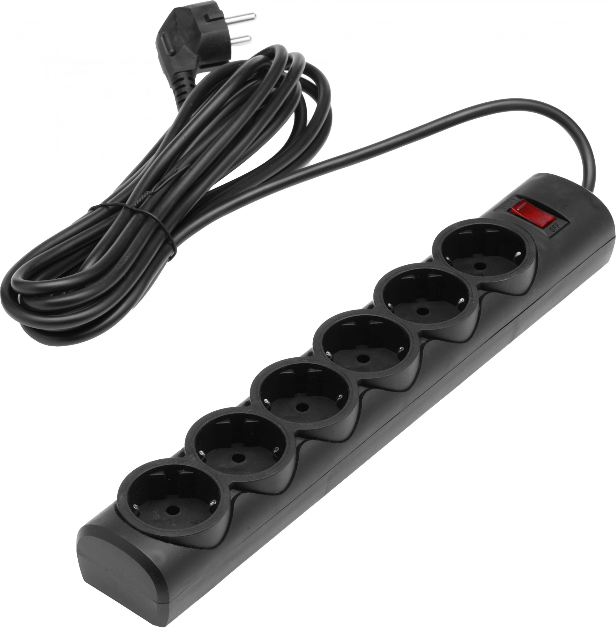 6 розеток с заземлением. Автоматический предохранитель, встроенный в выключатель. Защита от перегрузки и короткого замыкания. Крепление на стену. Корпус из негорючего пластика.
