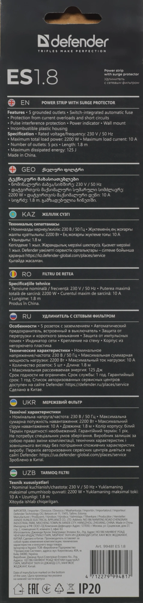Сетевой фильтр Defender ES