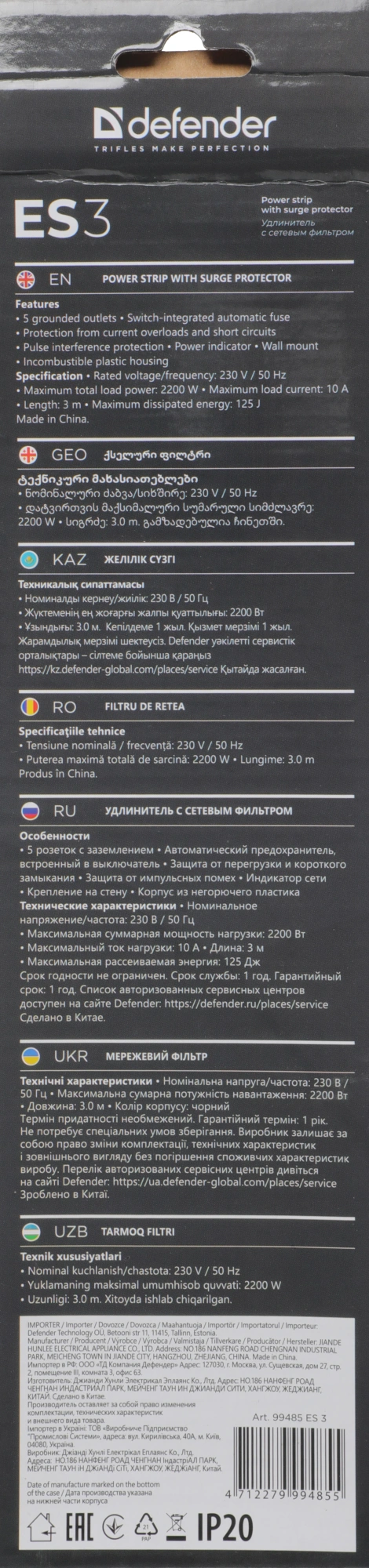 Автоматический предохранитель, встроенный в выключатель. Защита от перегрузки и короткого замыкания. Защита от импульсных помех. Индикатор сети. Крепление на стену. Корпус из негорючего пластика.