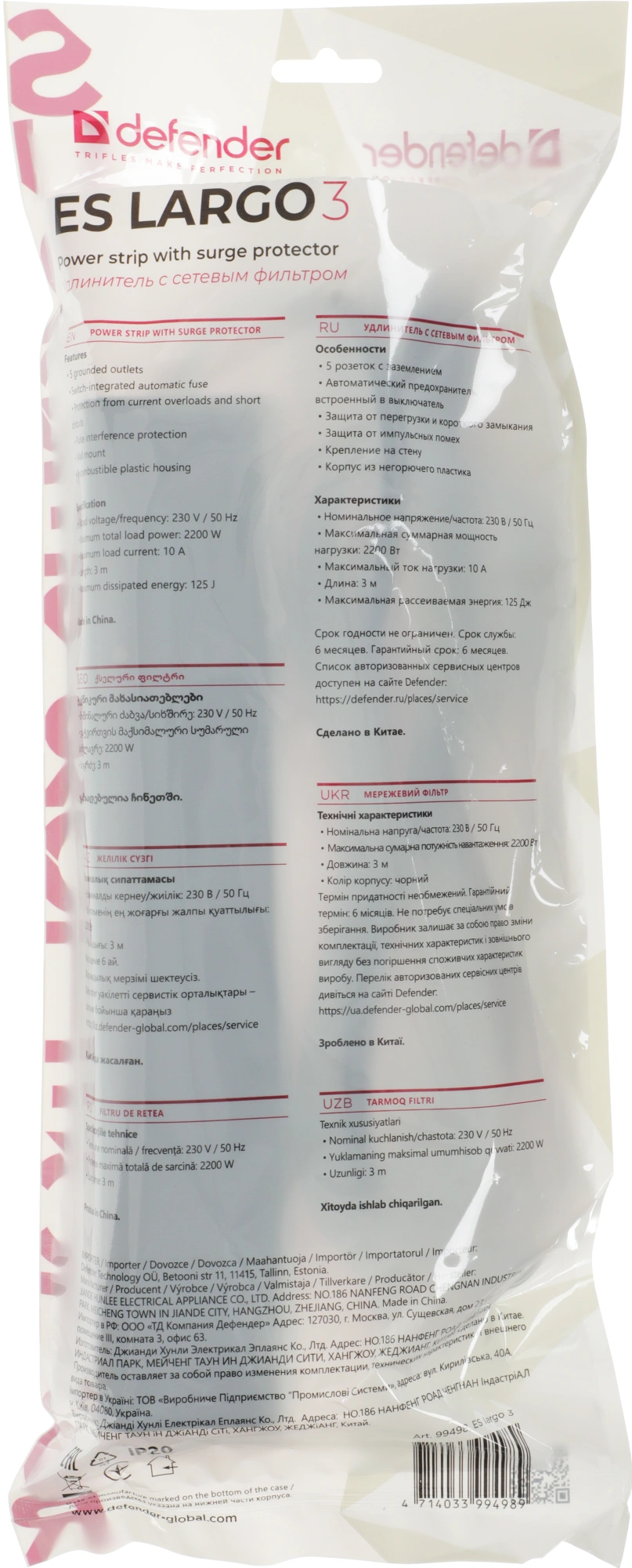Сетевой фильтр Defender ES largo
