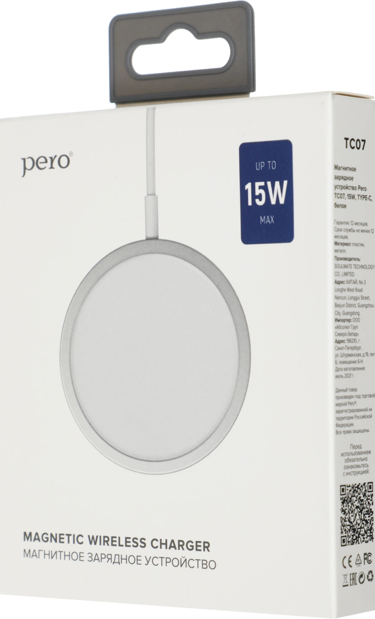Беспроводное з/у PERO TC07 мощностью 15 Вт.