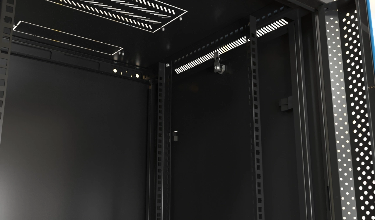 Шкаф коммутационный Hyperline (TWB-2766-SR-RAL9004) настенный 27U 600x600мм пер.дв.стал.лист 2 бок.пан. 60кг черный 520мм 180град. 1304мм IP20 сталь