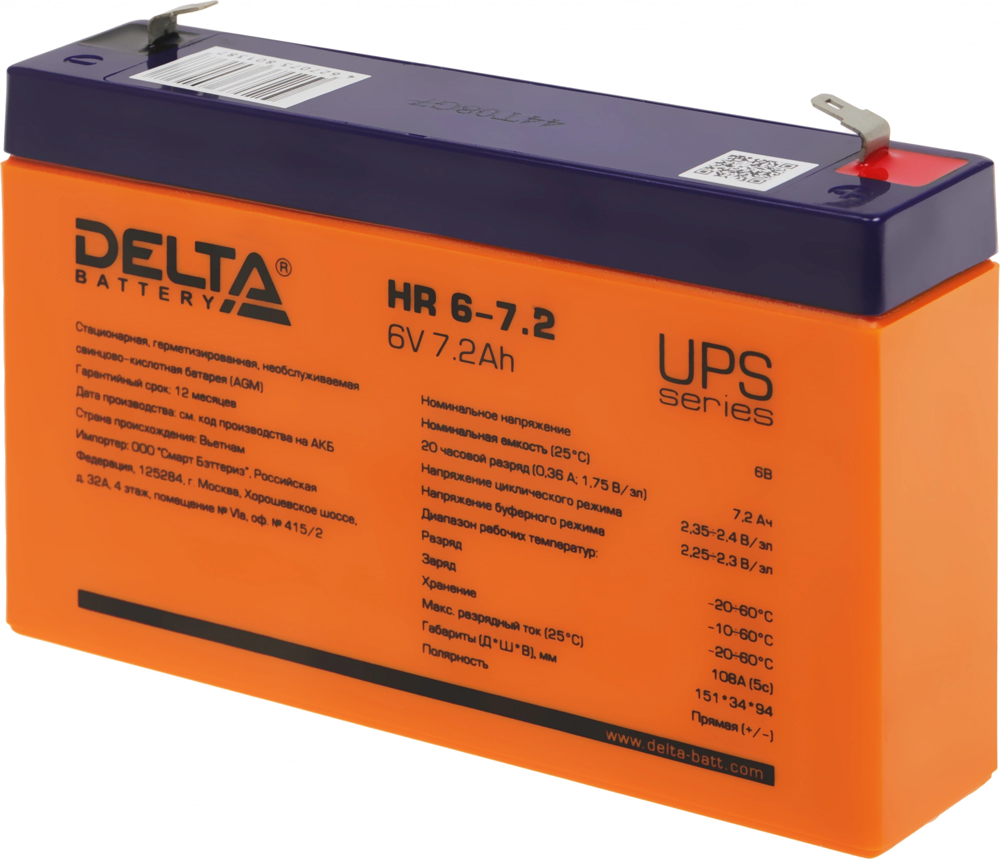 Батареи DELTA серии HR являются свинцово-кислотными, герметизированными, необслуживаемыми аккумуляторами с системой рекомбинации газов (VRLA). Произведены по технологии AGM (электролит, абсорбированный в стекловолоконном сепараторе).