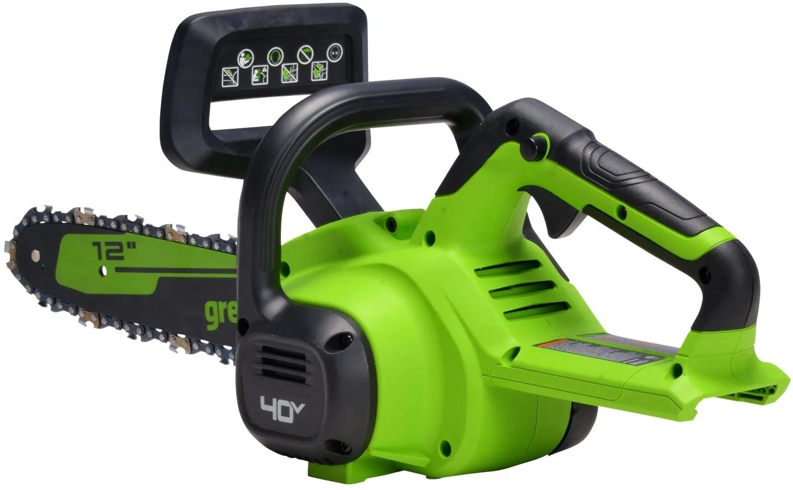 Цепная аккумуляторная пила Greenworks G40CS30II 40V (артикул 2007807) - небольшая, легкая (всего 2,74 кг.) садовая пила. Благодаря ее компактным размерам она легко помещается в багажнике автомобиля или даже в рюкзаке. Это отличный выбор для подрезки толстого кустарника или сучков, пиления бревен