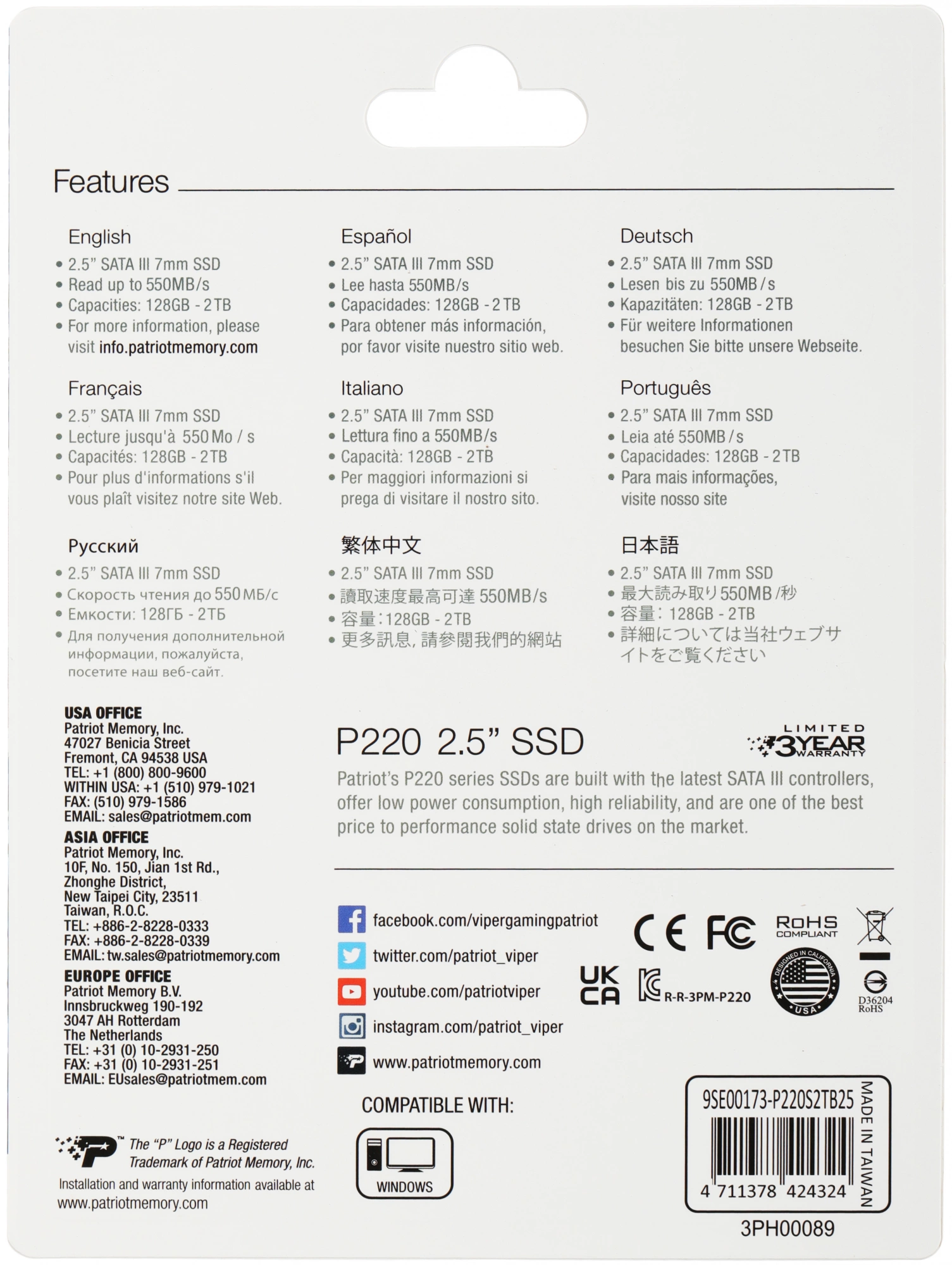 Накопитель SSD Patriot SATA-III 2TB P220S2TB25