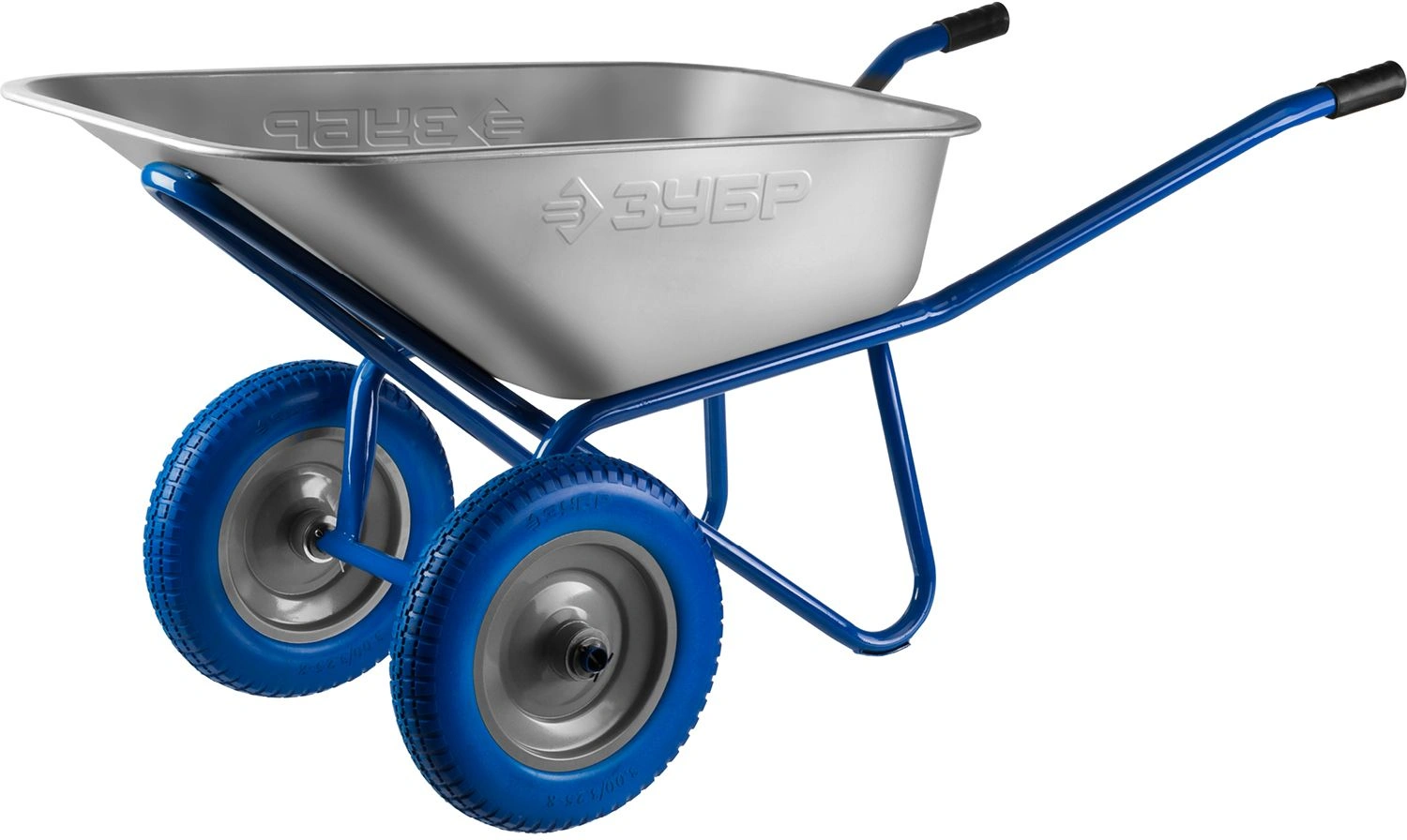 Строительная двухколесная тачка 110 л, грузоподъемность 240 кг 39911_z01 предназначена для перевозки твердых и сыпучих грузов. Данная модель отличается прочной конструкцией и способна выдерживать вес до 240 кг. Цинковое покрытие.