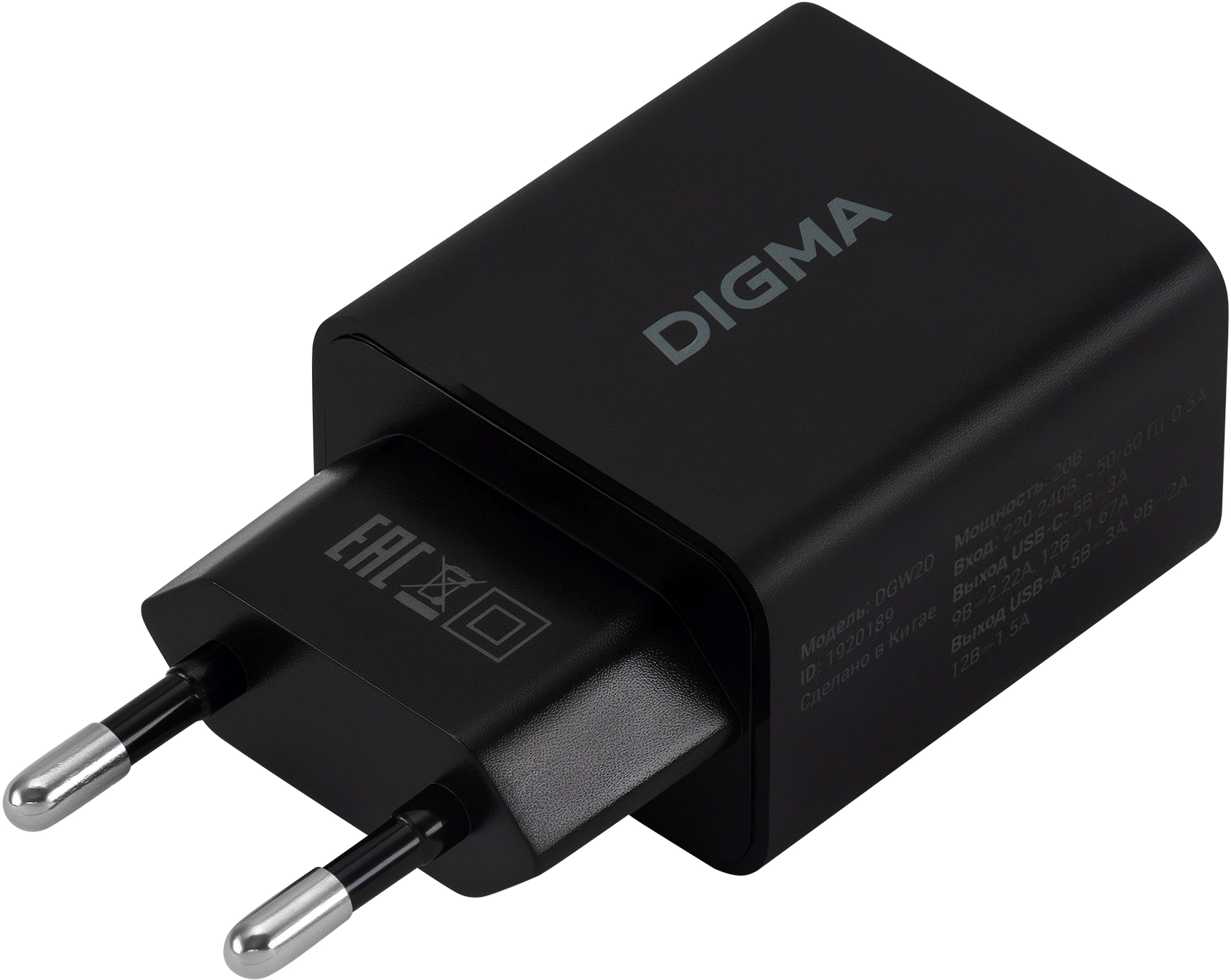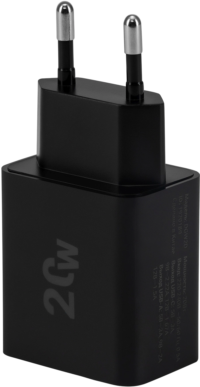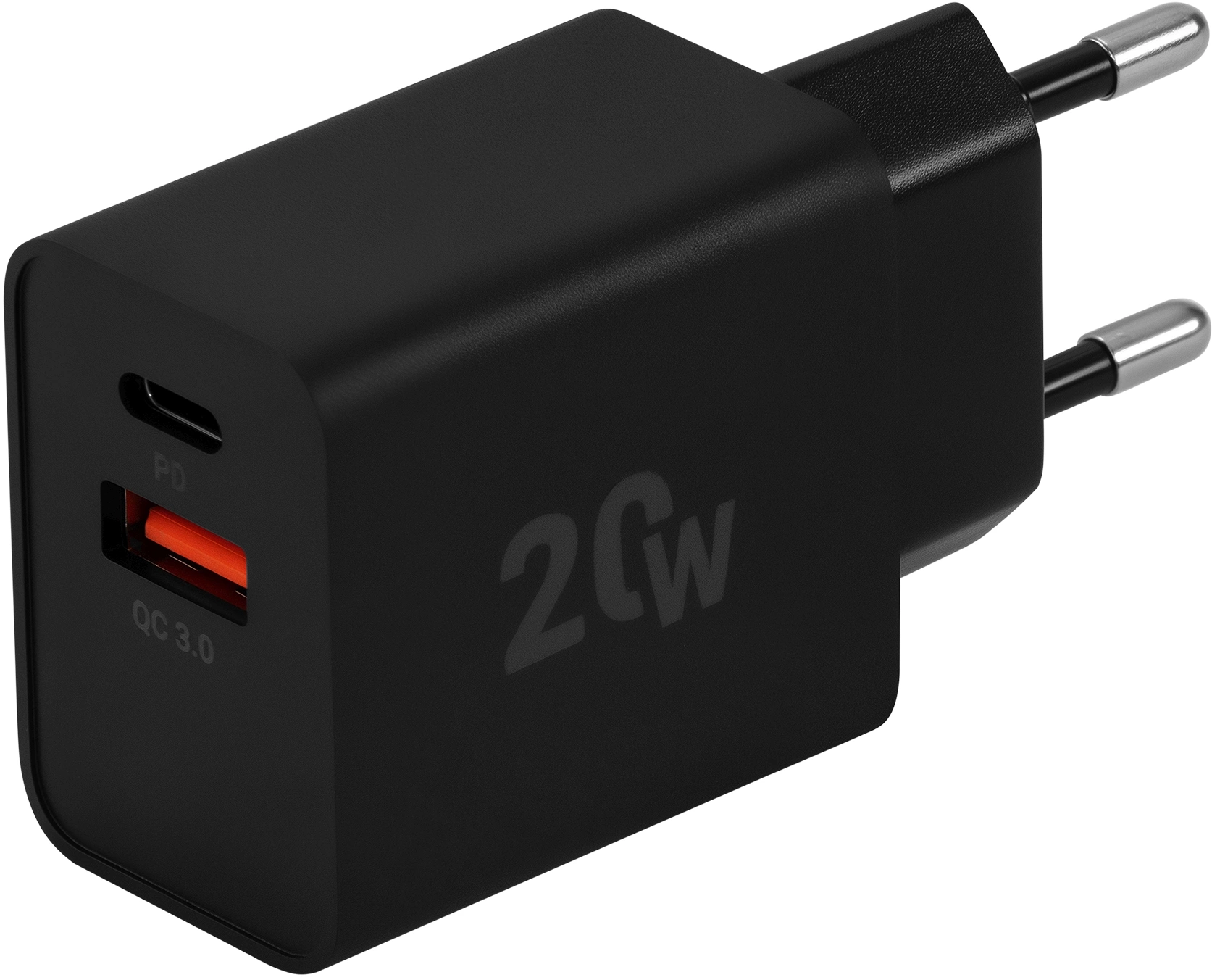 20W 3A+1A (PD+QC) USB-C/USB-A универсальное черны...