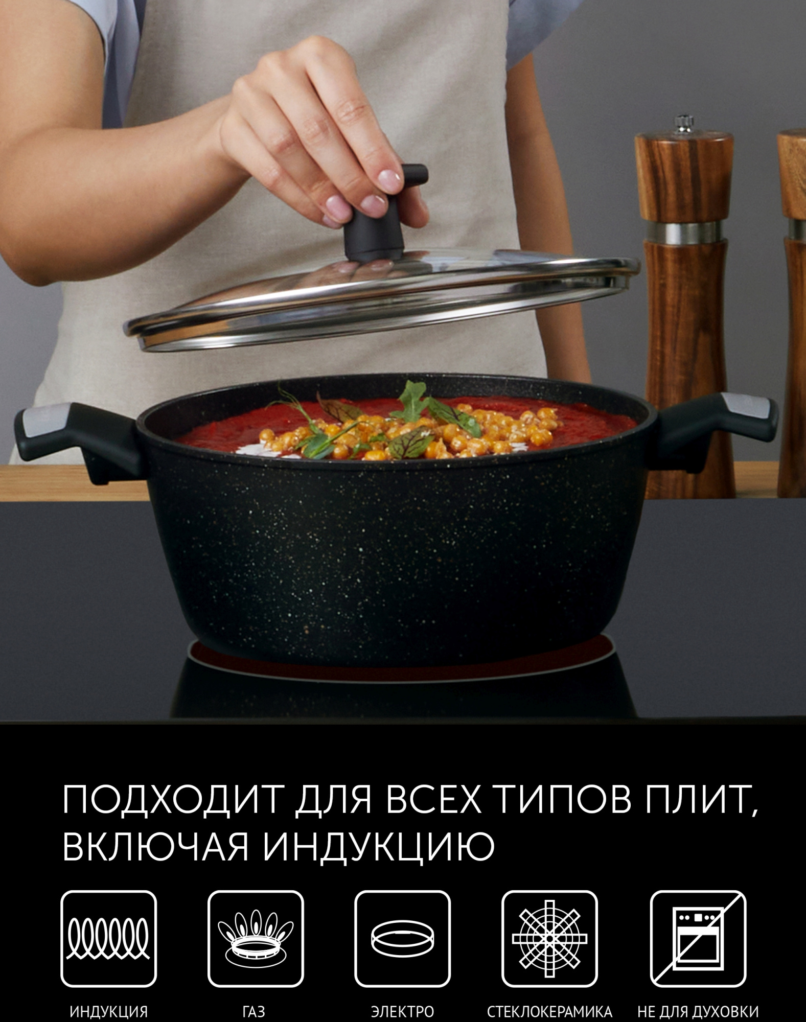 для газовых плит, для галогеновых плит, для индукционных плит, для стеклокерамических плит, для электрических плит