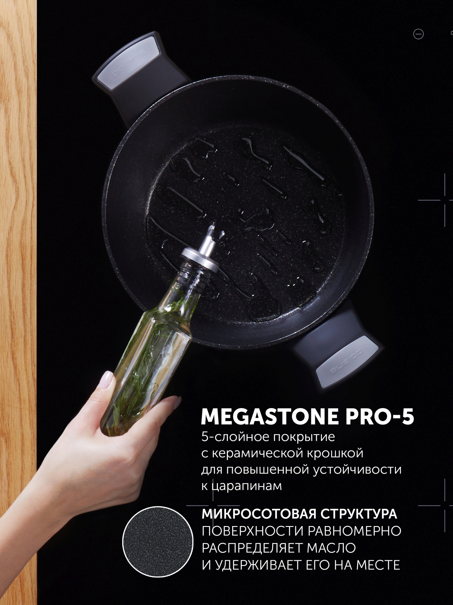 MEGASTONE PRO-5 Инновационное 5-слойное антипригарное покрытие с керамической крошкой. Внутреннее покрытие - высокопрочное антипригарное 5-слойное покрытие с керамической крошкой в составе Megastone PRO-5 от компании Dyflon.