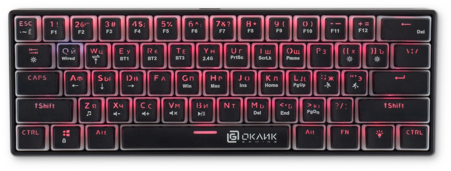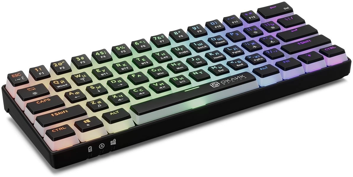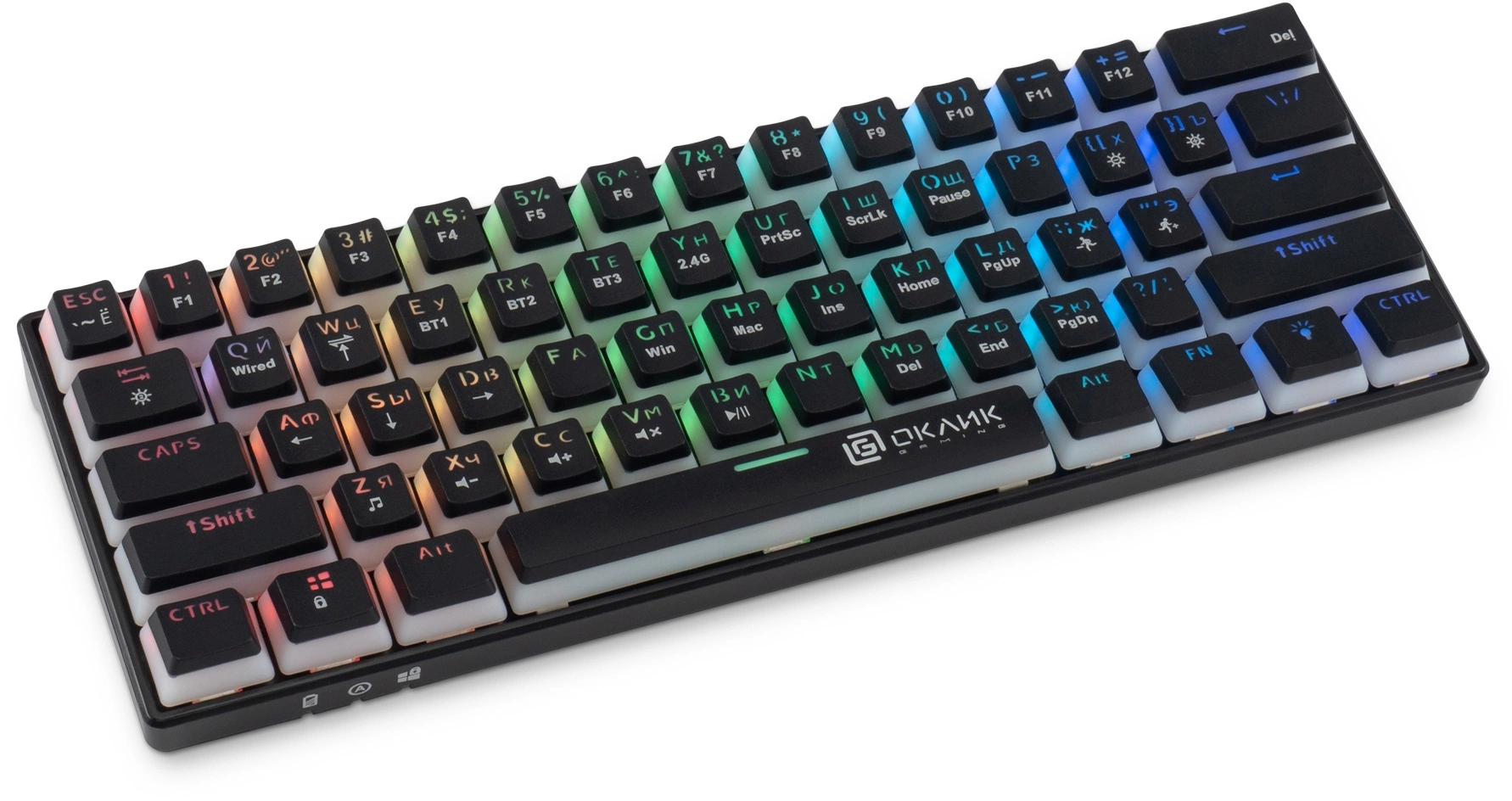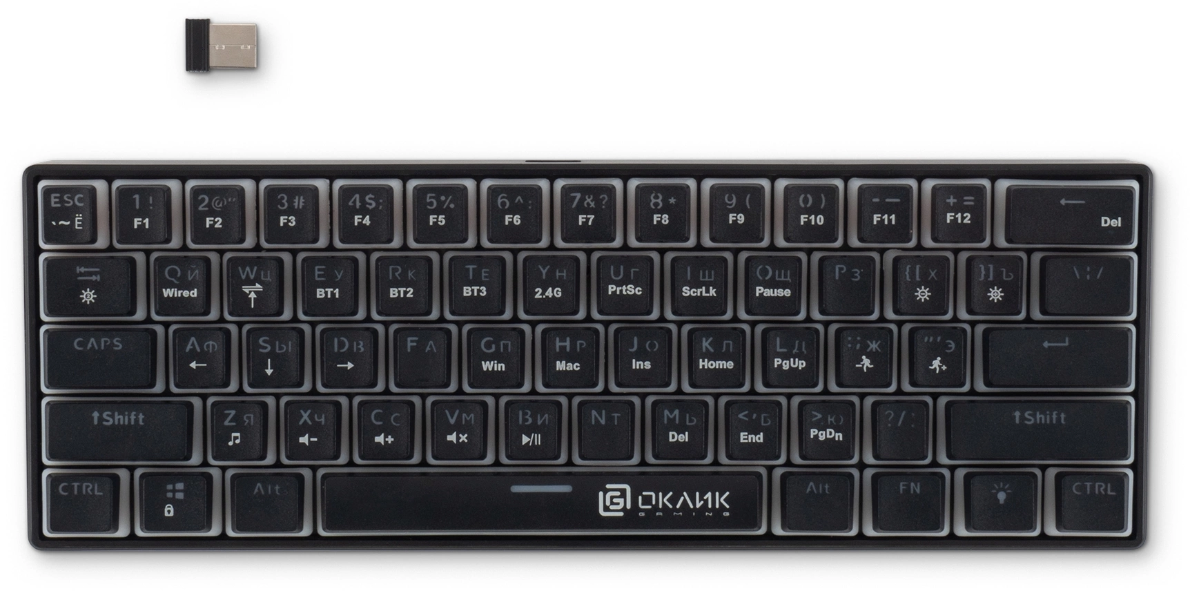 Особенность клавиатуры Oklick K763W – типы беспроводного соединения. Устройство поддерживает как Bluetooth, так и радиоканал, что позволяет использовать ее с различными устройствами без лишних проводов и ограничений. Радиус действия клавиатуры составляет 10 метров, что даёт игроку свободу движения.