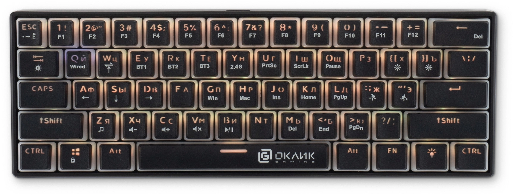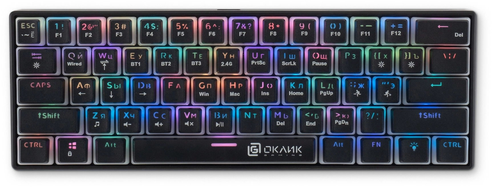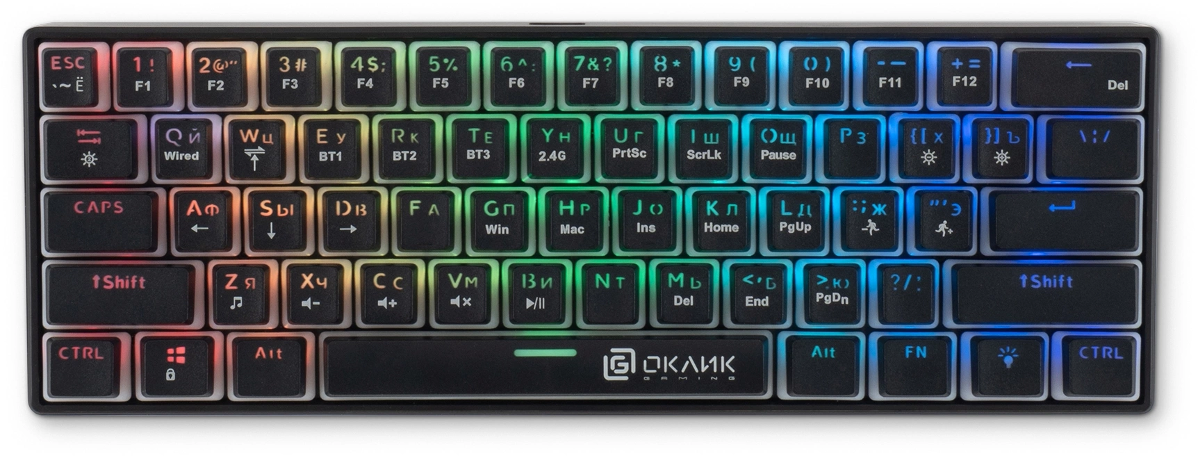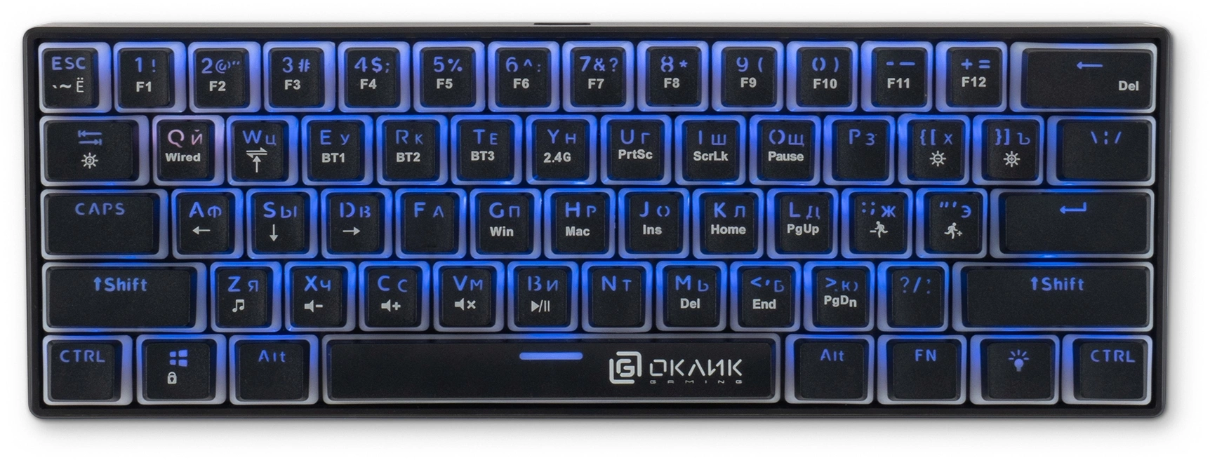 Особенность клавиатуры Oklick K763W – типы беспроводного соединения. Устройство поддерживает как Bluetooth, так и радиоканал, что позволяет использовать ее с различными устройствами без лишних проводов и ограничений. Радиус действия клавиатуры составляет 10 метров, что даёт игроку свободу движения.