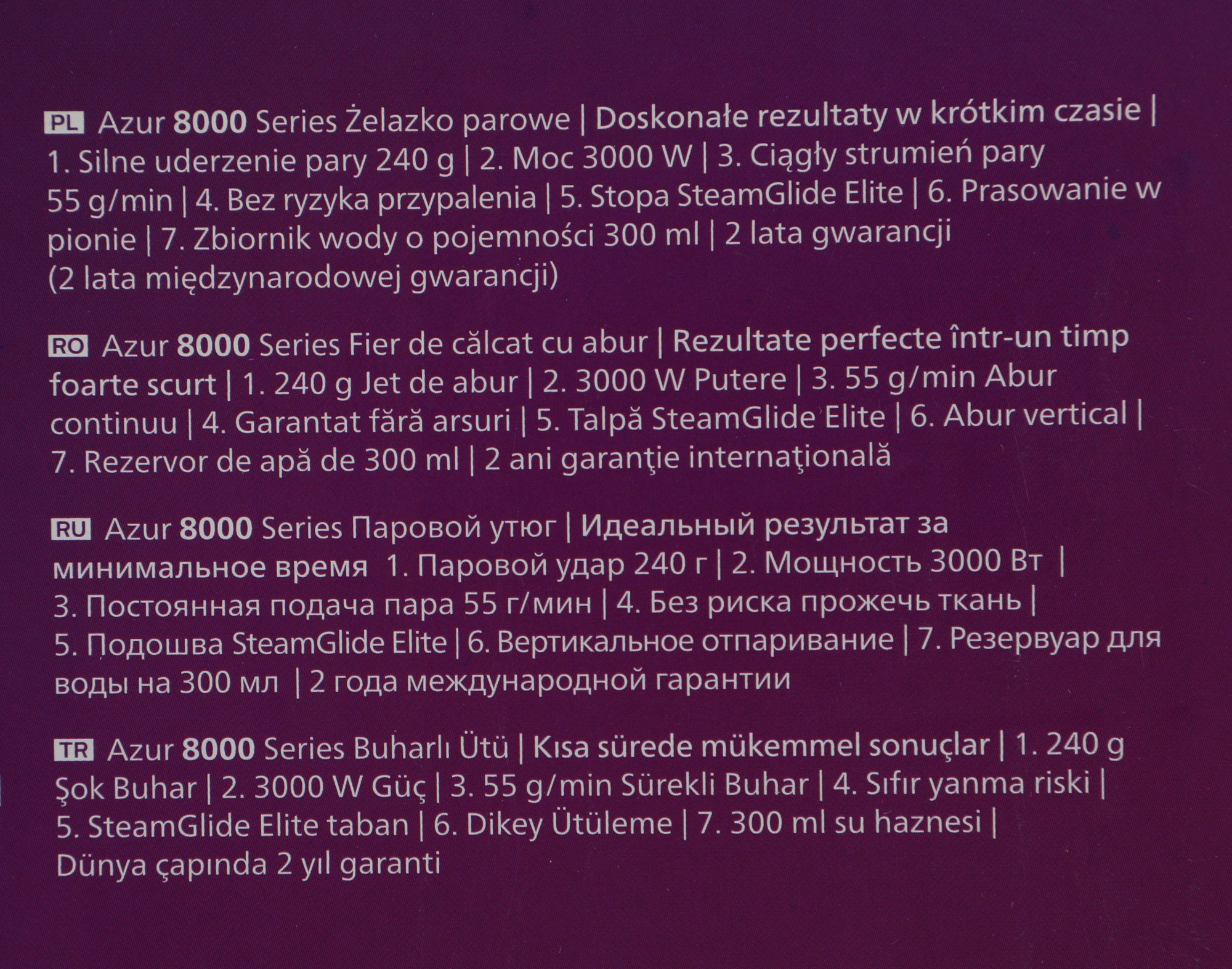 автоматическая регулировка температуры, вертикальное отпаривание, пароувлажнение, сухое глажение