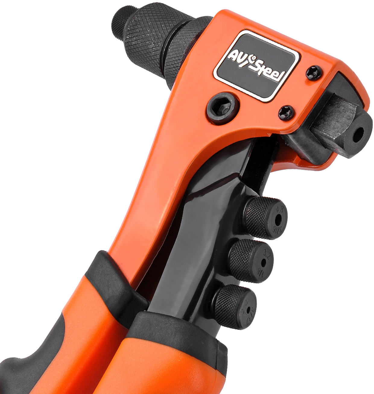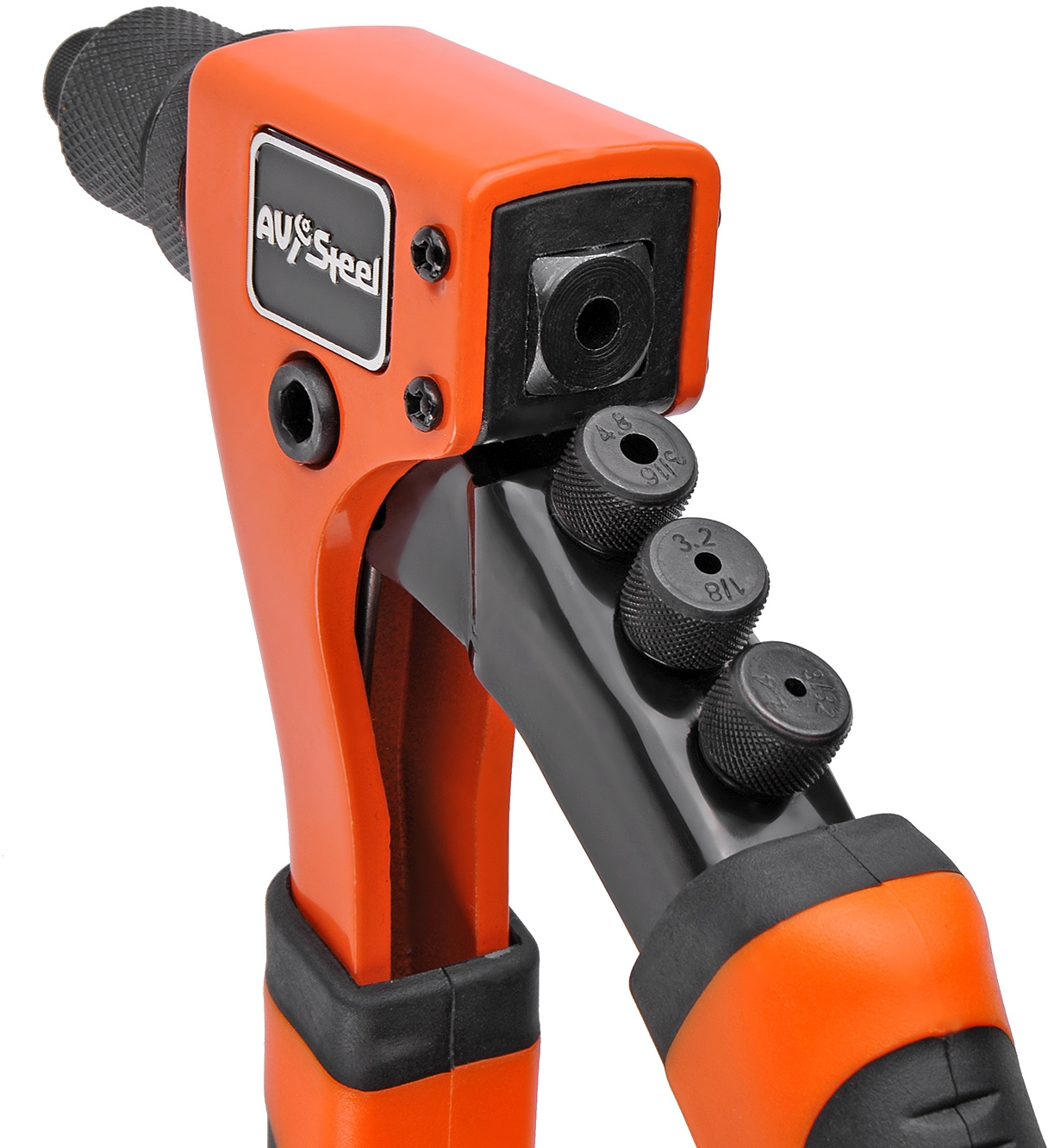 Max скрепляемая толщина - 45 мм. Размер заклепок - 2.4; 3.2; 4.0; 4.8 мм.