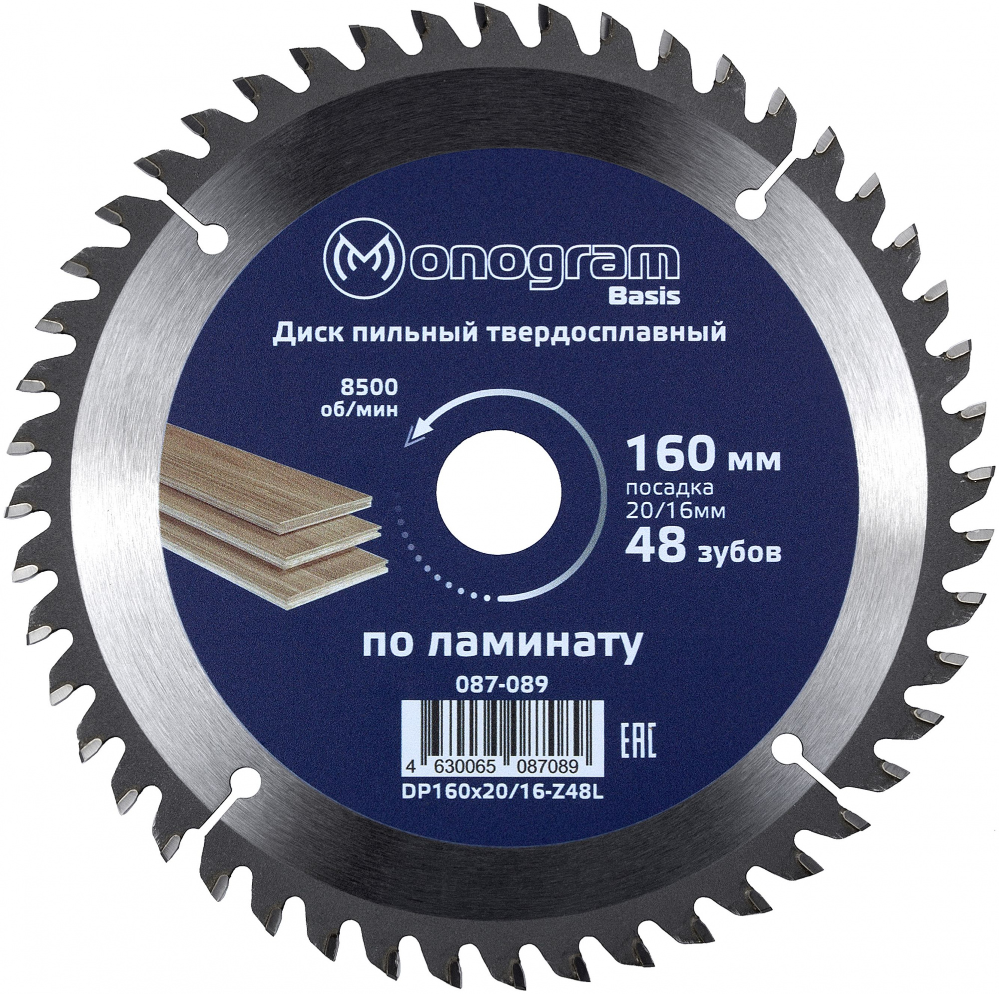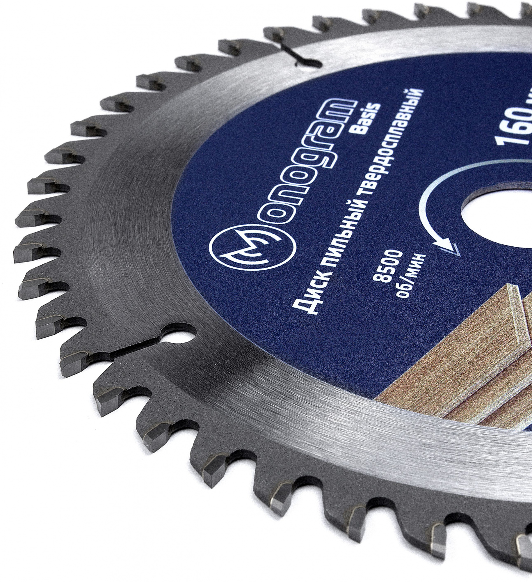 Диск пильный твердосплавный Basis MONOGRAM предназначен для аккуратной распиловки циркулярной пилой ламинированных ДСП, ДВП, фанеры и не абразивных пластиков. Изготовлен из специальной пружинной стали 65Г с напайками из карбида вольфрама ВК-8. Угол атаки зуба +5°.