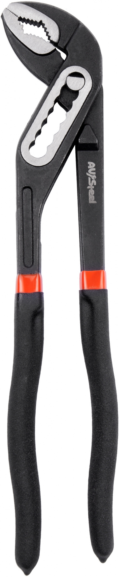 Переставные клещи AV Steel с коробчатым механизмом изготовлены из углеродистой стали. Модель подходит для работ с крепежом различного размера, максимальный захват равен 47 мм. За счет длины рукояток можно развить хорошую силу сжатия.