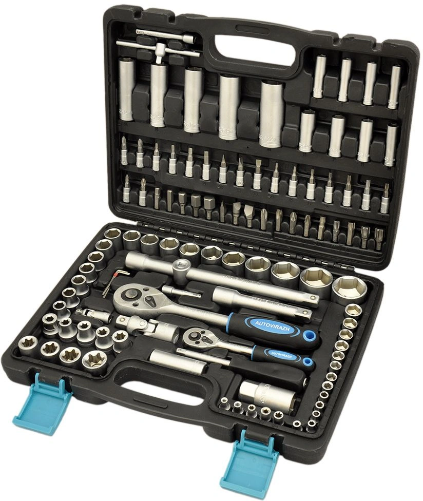 Набор инструмента (108 предметов, 1/2 1/4 DR, CrV) AUTOVIRAZH AV-212108 используется для обслуживания и ремонта автотранспорта.