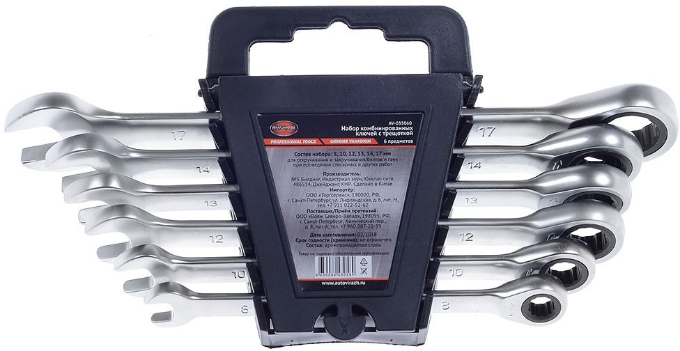 Набор ключей комбинированных трещоточных 8-17 мм. "AV Steel" 6 предм.