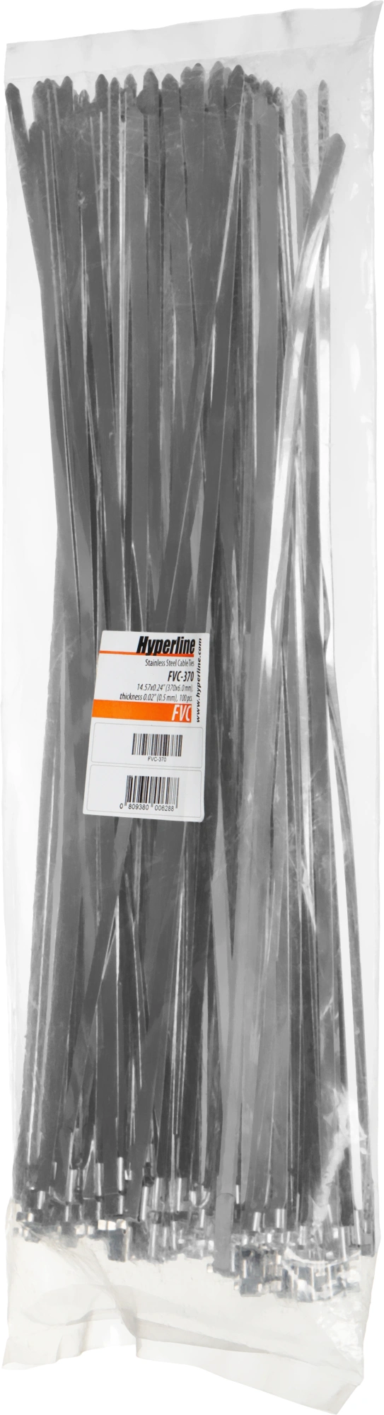Стяжка металлическая Hyperline FVC-370 370x6мм (упак:100шт) сталь AISI 410L универсальный натуральный