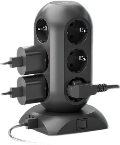 Сетевой фильтр с 12 розетками 220В, 3 USB портами и кнопкой питания. Компактный дизайн. LED индикатор. Защита от перегрузки и скачков напряжения. Огнеупорный материал корпуса. Высококачественный медный кабель 2 метра. Надежные плотные разъёмы.