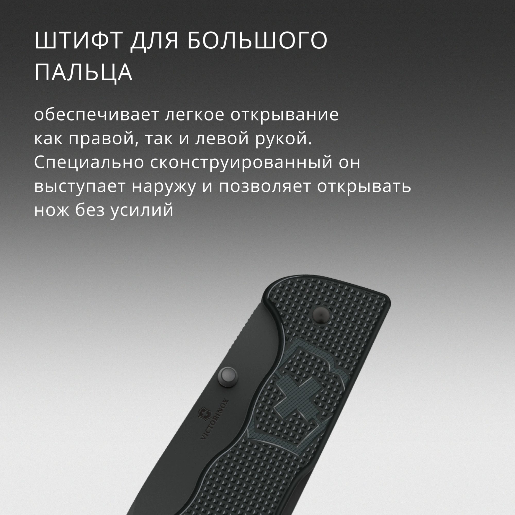 Штифт для большого пальца обеспечивает легкое открывание как правой, так и левой рукой. Специально сконструированный съемный штифт выступает наружу и позволяет открывать нож без усилий.