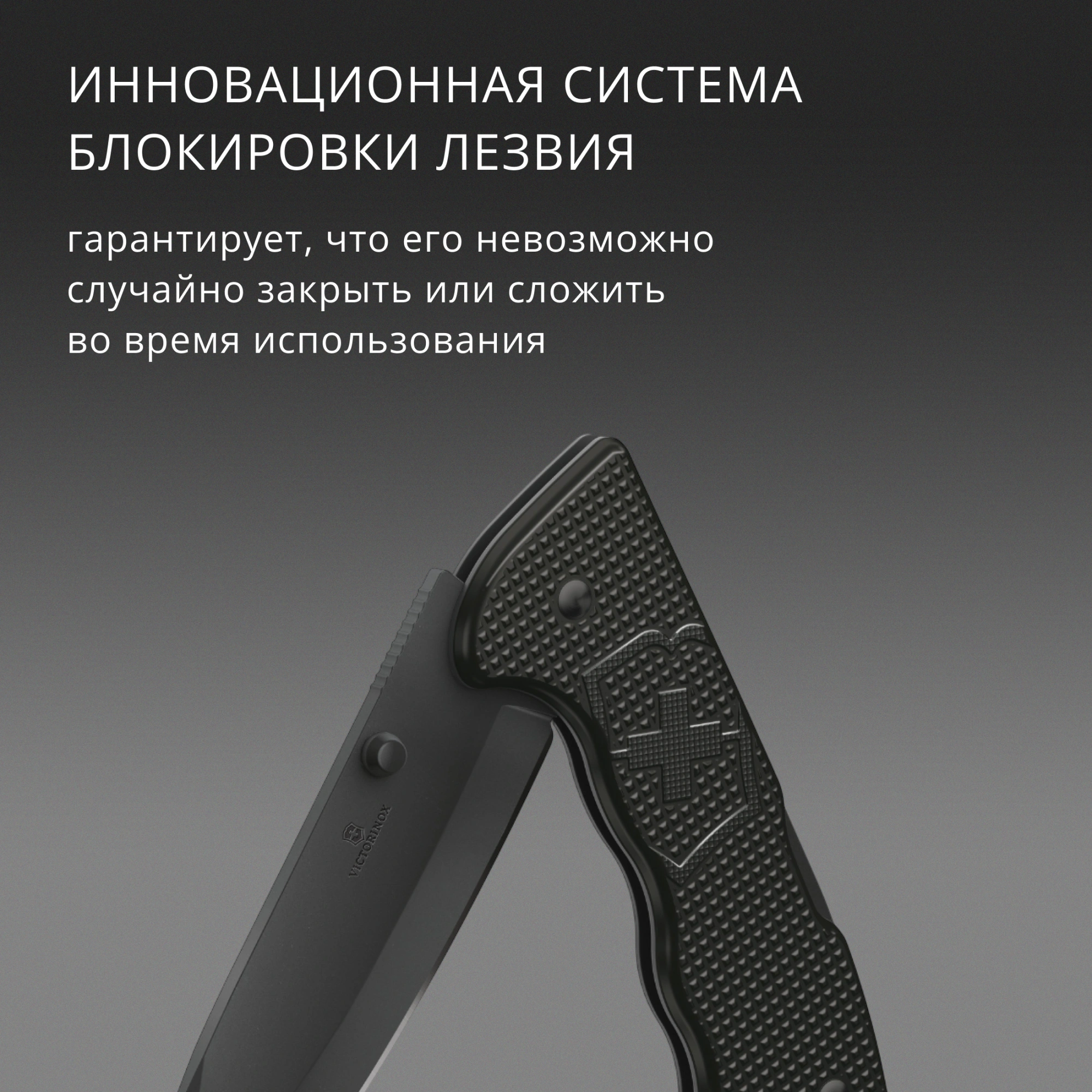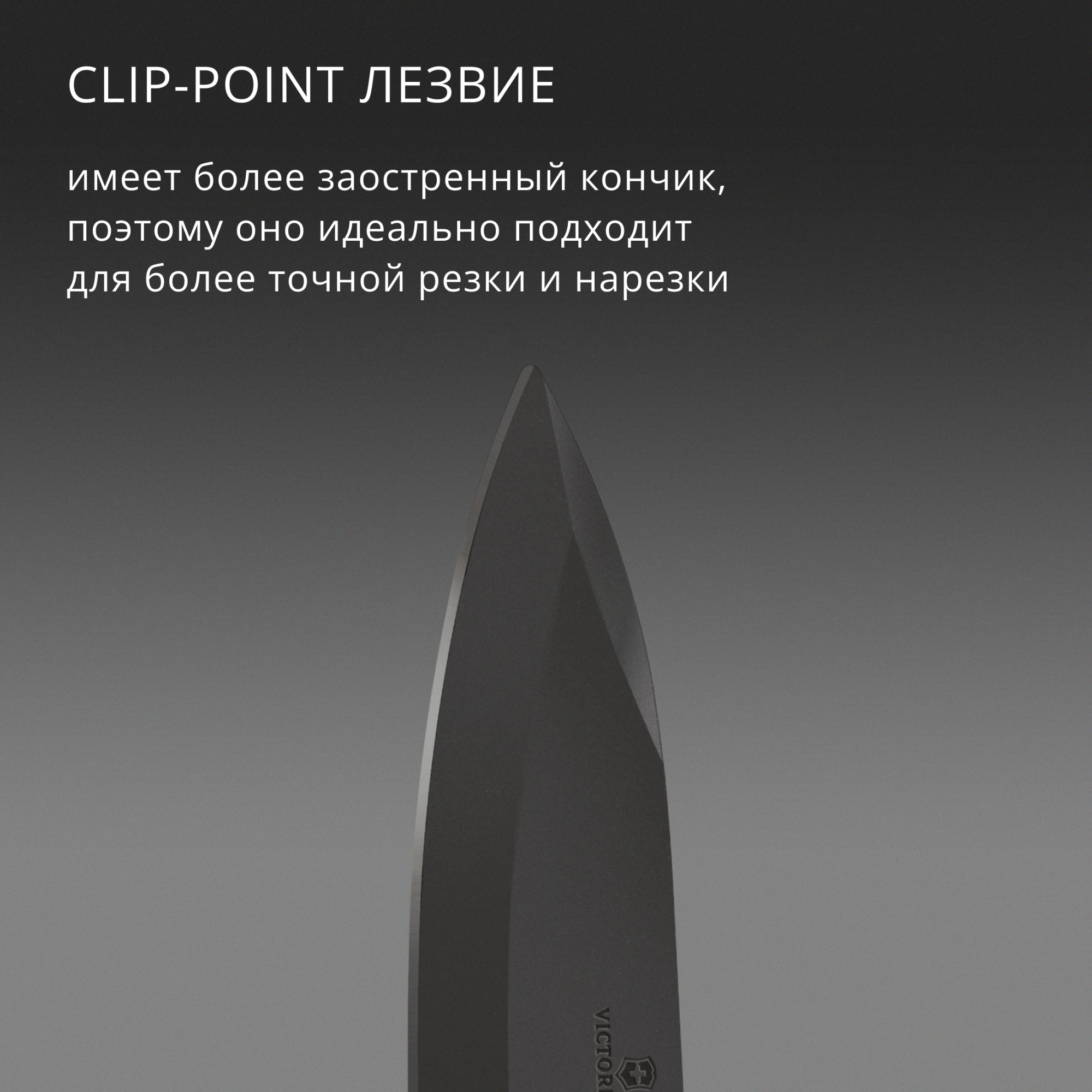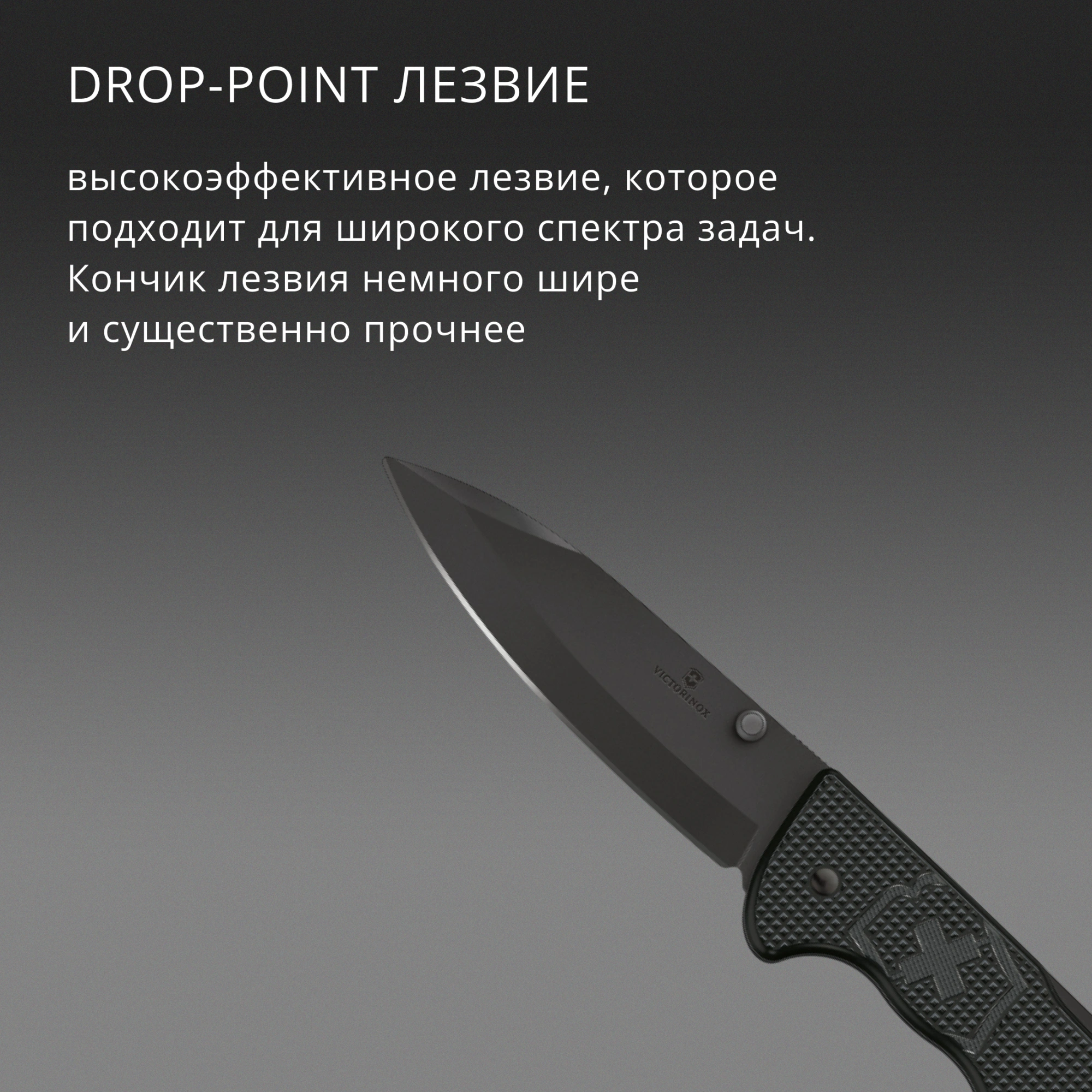 Drop-point лезвие. Это лезвие стандартной формы Victorinox. Высокоэффективное и многофункциональное лезвие, которое подходит для широкого спектра задач. Кончик лезвия немного шире и существенно прочнее.