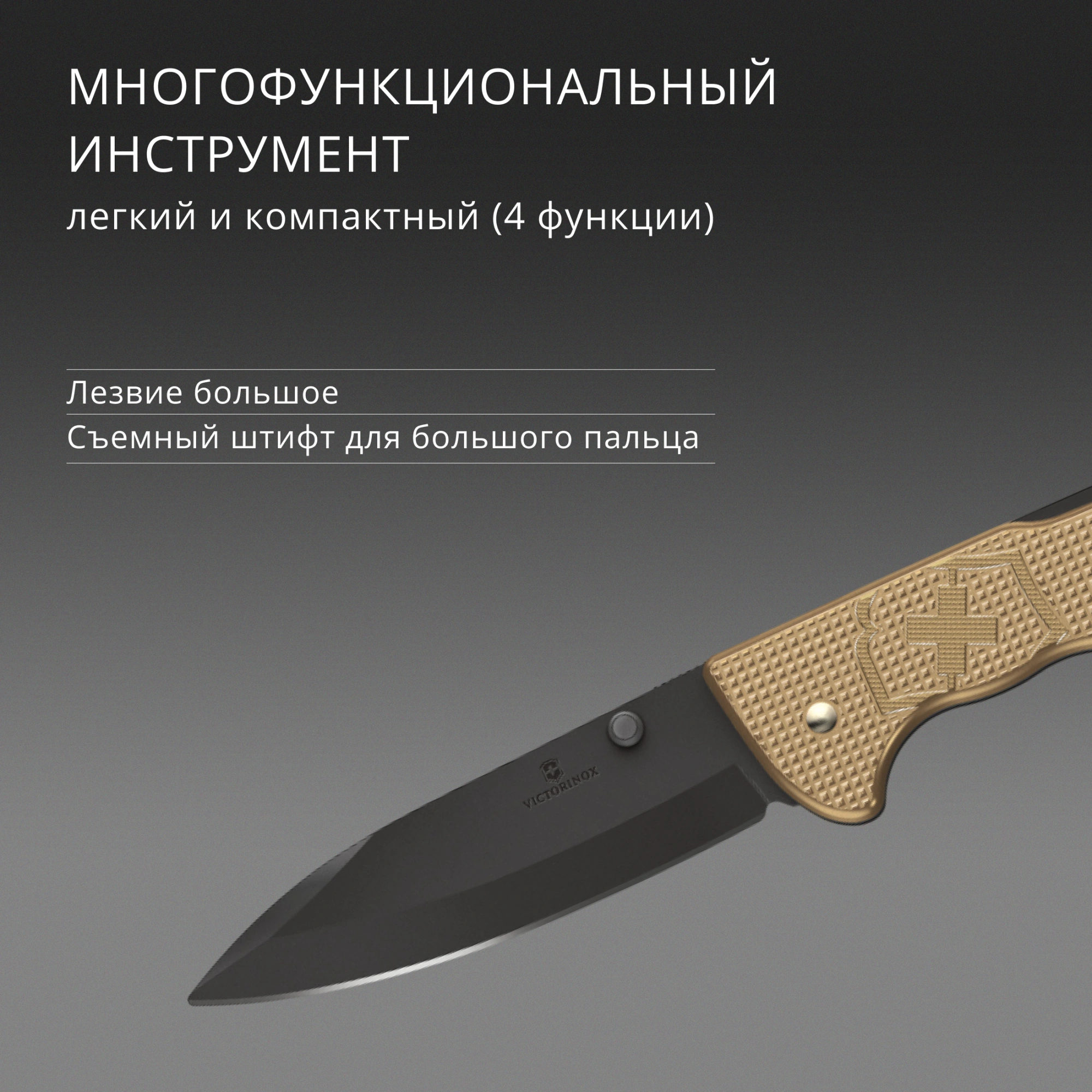 Drop-point лезвие. Это лезвие стандартной формы Victorinox. Высокоэффективное и многофункциональное лезвие, которое подходит для широкого спектра задач. Кончик лезвия немного шире и существенно прочнее.
