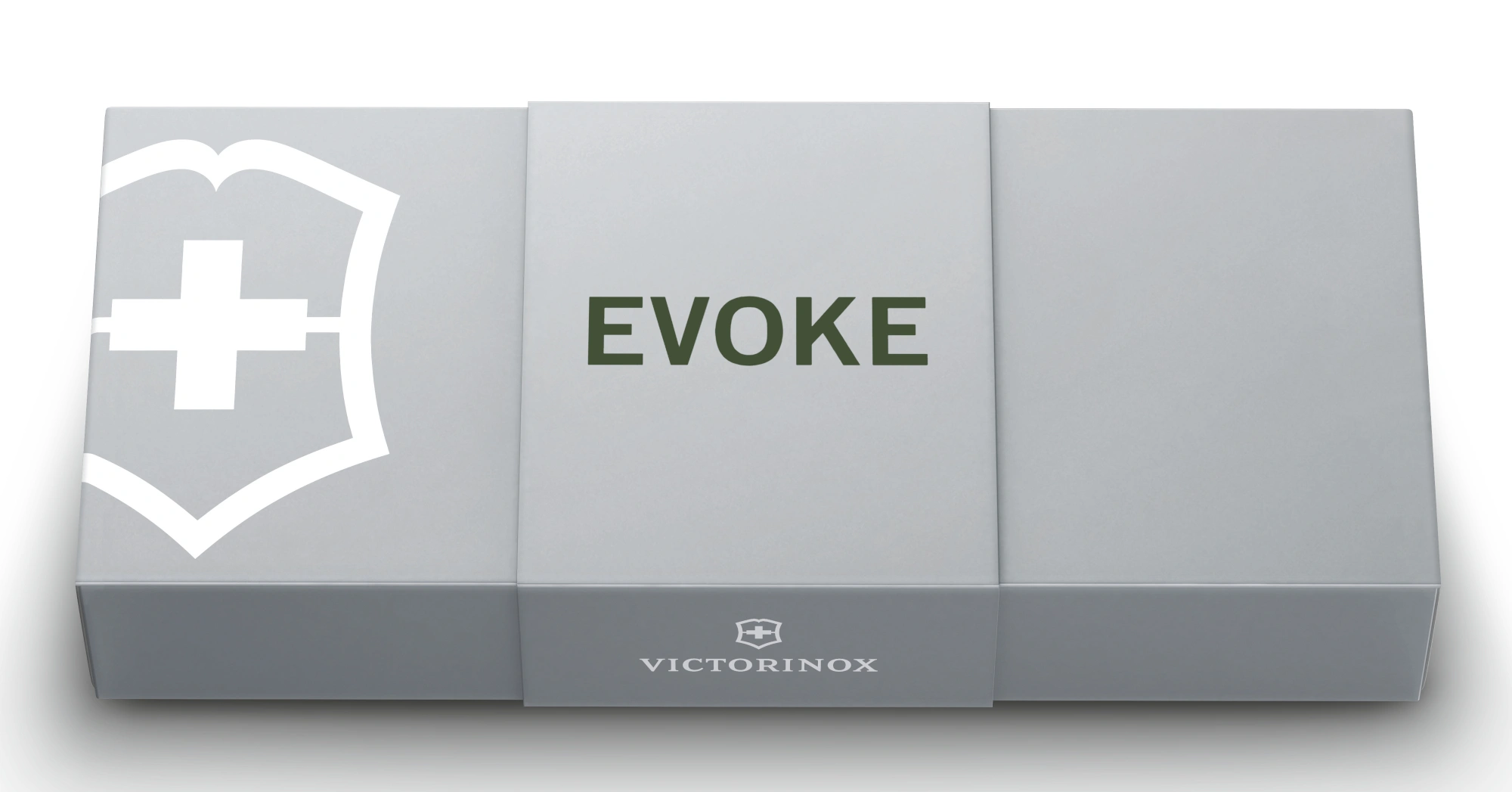 Коллекция Evoke — это естественная эволюция предыдущей коллекции Victorinox Hunter Pro. Evoke нацелен на разнообразного потребителя, тех кто ищет складные ножи отличающиеся простотой и стильной функциональностью. Коллекция расширена и теперь включает в себя различные типы лезвий, цветовые вариации корпуса и лезвий, добавлена инновационная съемная кнопка для большого пальца для легкого открытия ножа. Все это позволяет удовлетворять и превосходить потребности потребителей в повседневной жизни. Эта коллекция ножей создана для взыскательного покупателя, который ищет высокое качество, стильные изделия и премиальный продукт. В коллекции доступно восемь новых складных ножей премиум-класса, снабженные как рукоятями из материала Alox, так и деревянными. Название коллекции Evoke отражает ee многофункциональный характер, через его значение (т. е. вызвать воспоминание, идею или реакцию), ножи Evoke передают ощущение того, что отправляясь в приключение ты всегда будешь готов.