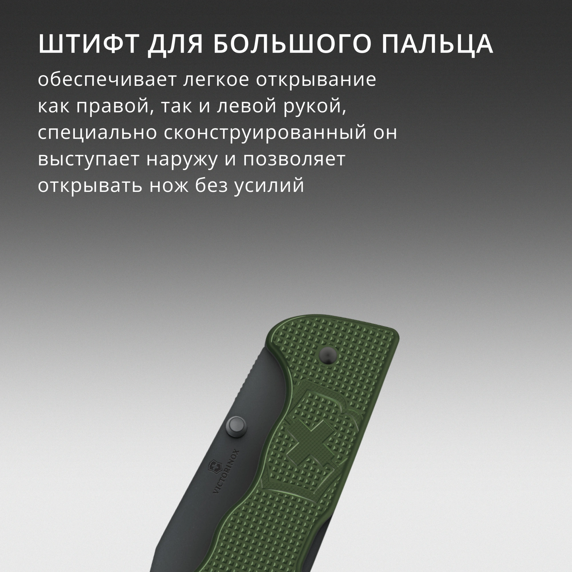 Штифт для большого пальца обеспечивает легкое открывание как правой, так и левой рукой. Специально сконструированный съемный штифт выступает наружу и позволяет открывать нож без усилий.