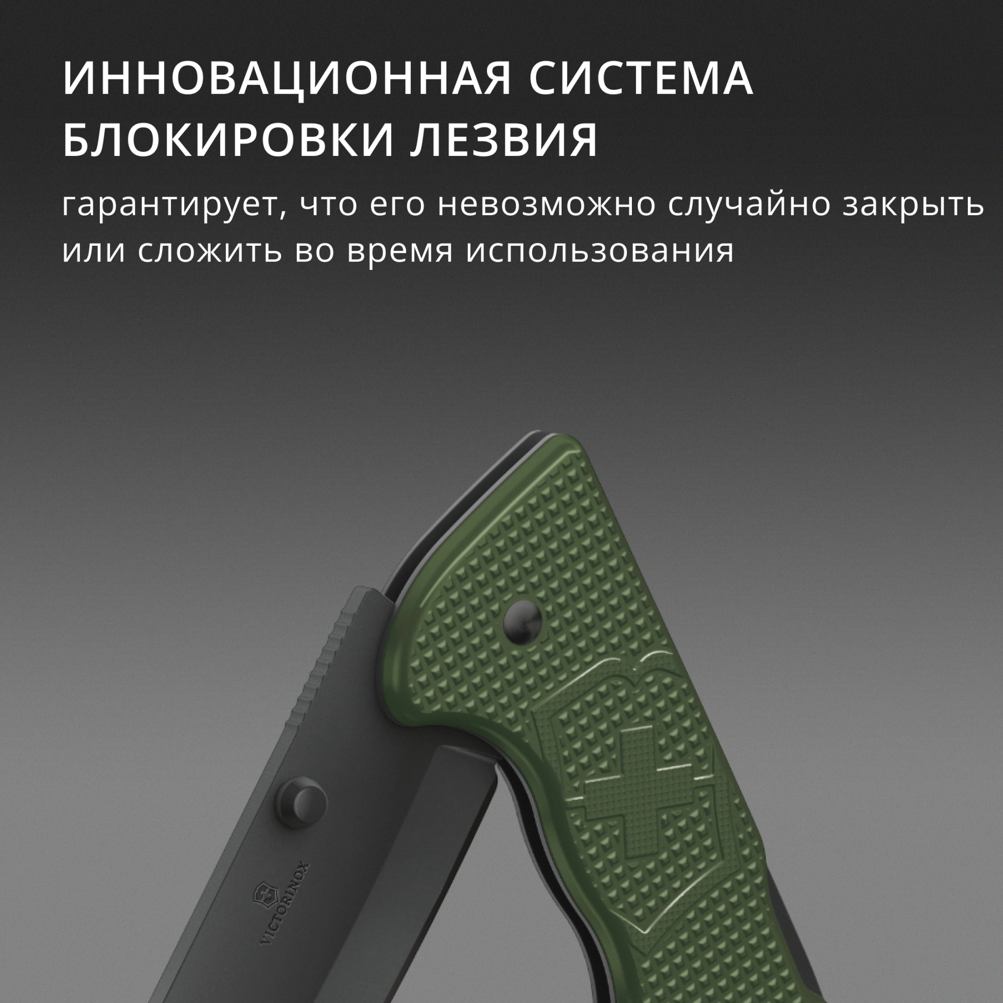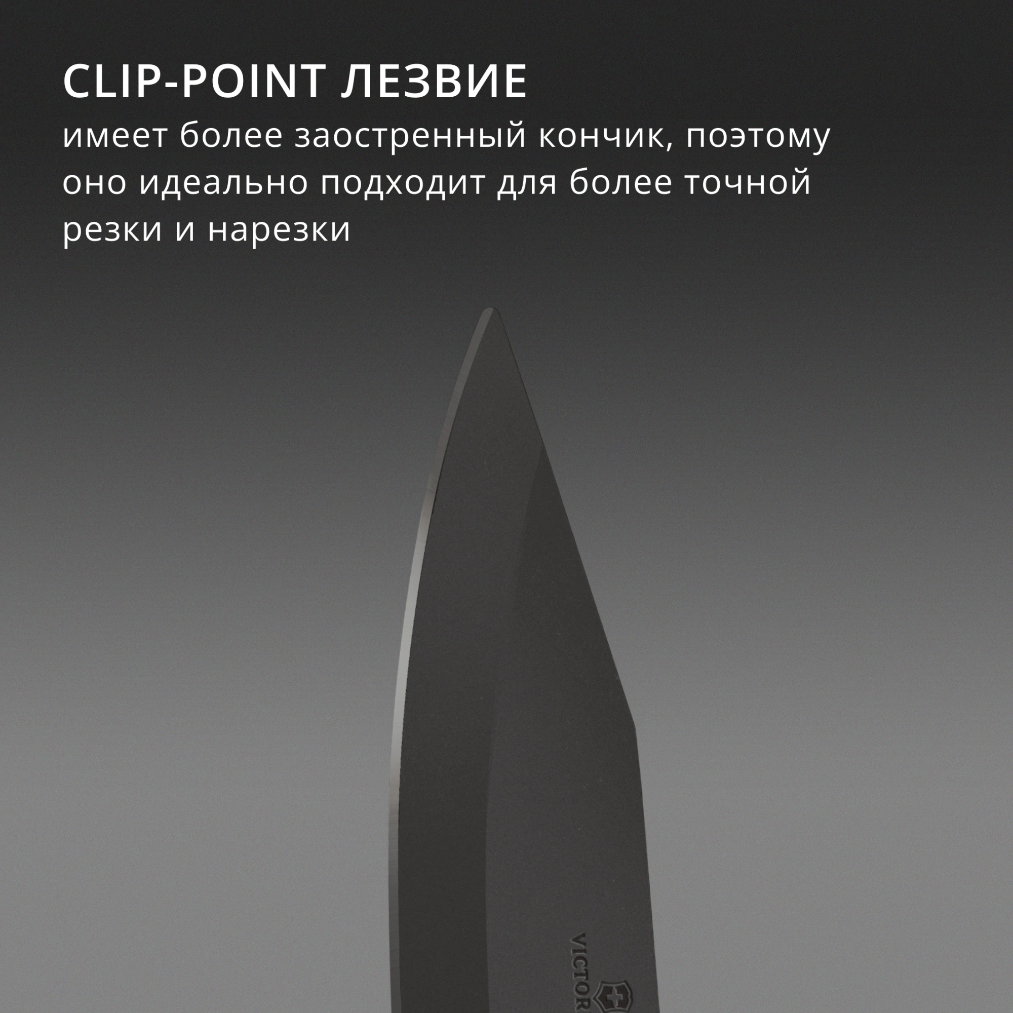 Drop-point лезвие. Это лезвие стандартной формы Victorinox. Высокоэффективное и многофункциональное лезвие, которое подходит для широкого спектра задач. Кончик лезвия немного шире и существенно прочнее.