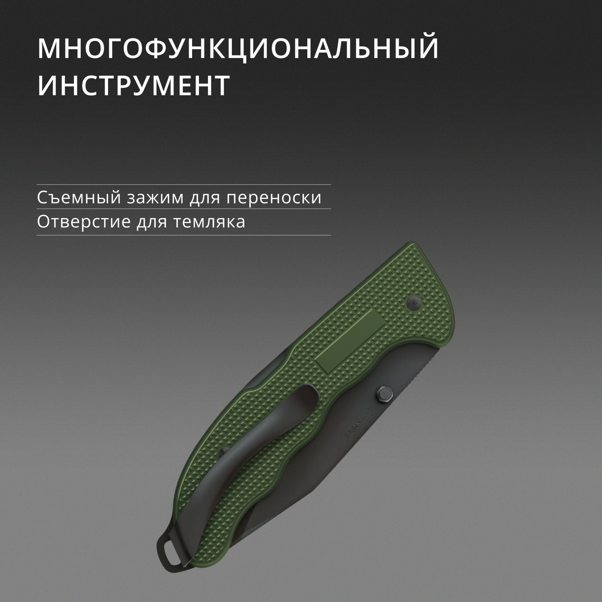 Инновационная система блокировки лезвия гарантирует, что его не возможно случайно закрыть или сложить во время использования. Это желанная функция безопасности, обеспечивающая исключительную стабильность. Она особенно эффективна для задач, требующих больших усилий, где прочность и устойчивость лезвия являются ключевыми факторами.