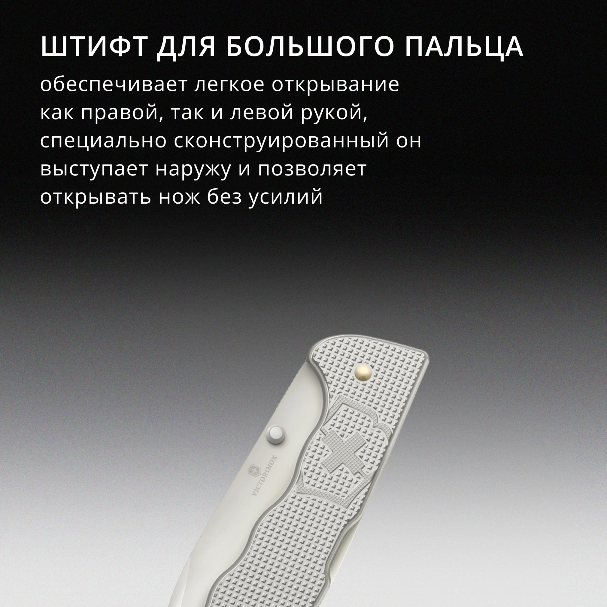 Штифт для большого пальца обеспечивает легкое открывание как правой, так и левой рукой. Специально сконструированный съемный штифт выступает наружу и позволяет открывать нож без усилий.