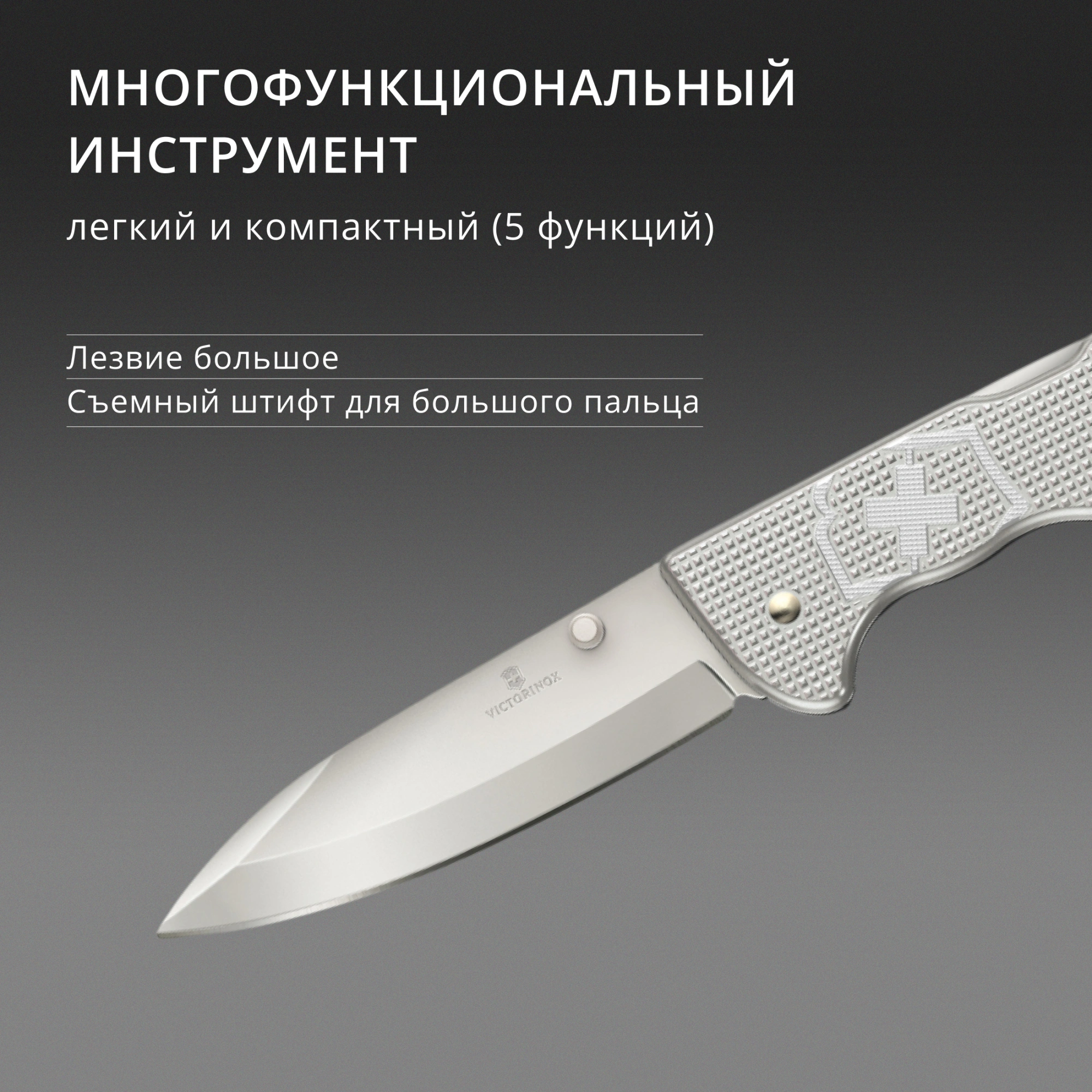 Drop-point лезвие. Это лезвие стандартной формы Victorinox. Высокоэффективное и многофункциональное лезвие, которое подходит для широкого спектра задач. Кончик лезвия немного шире и существенно прочнее.