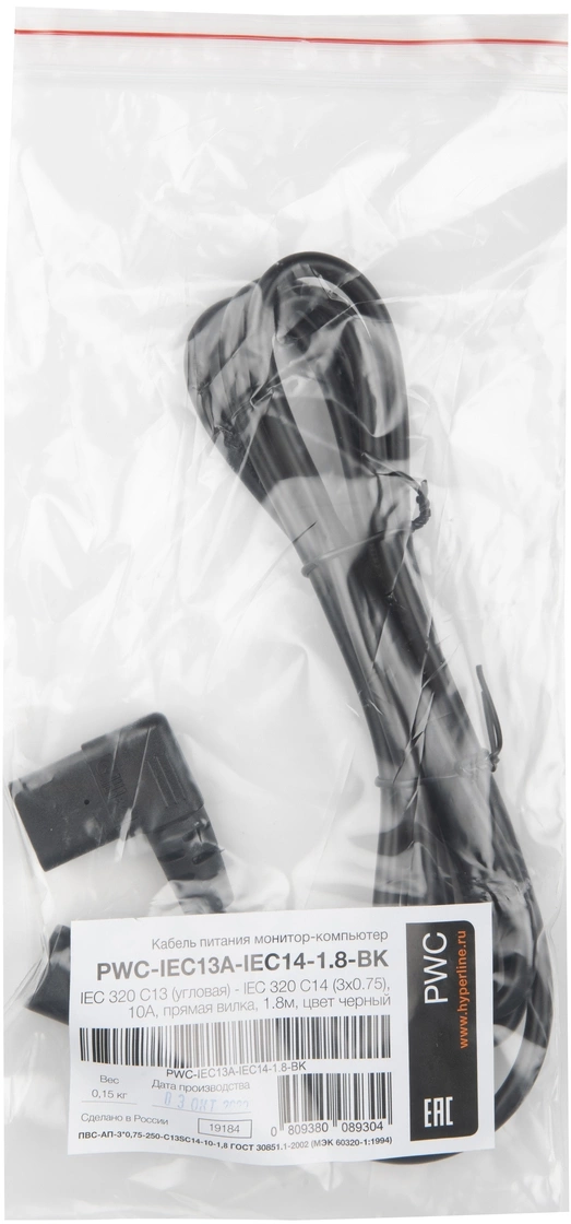 Шнур питания Hyperline PWC-IEC13A-IEC14-1.8-BK