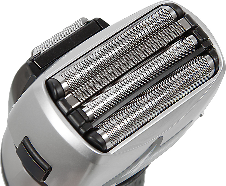 Бритва для сухого и влажного бритья. Бритвенная система из четырех дугообразных сеток. Лезвия из японской стали заточены под углом 30 градусов. Ручка с нескользящими вставками из эластомера. Встроенный выдвижной триммер. Адаптация к любому напряжению. Чехол для хранения и транспортировки.