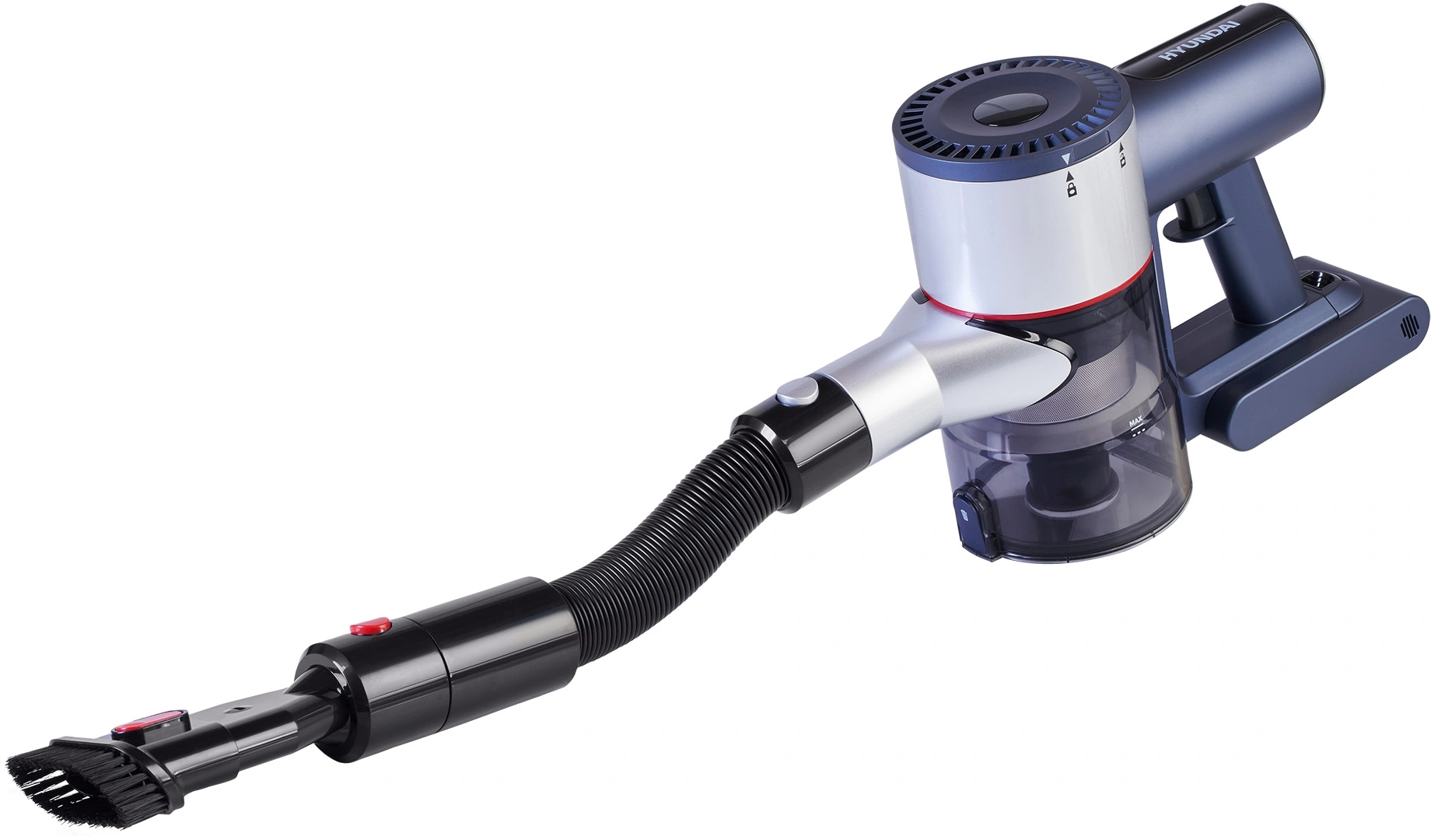 Вертикальный ручной пылесос Hyundai HYV-S7570 – универсальный инструмент для сухой уборки. С установленной удлинительной трубкой и моторизованной щеткой он поможет очистить напольные покрытия, а при помощи входящих в комплект дополнительных насадок можно удалить пыль с предметов интерьера, из радиаторов отопления и других труднодоступных мест.